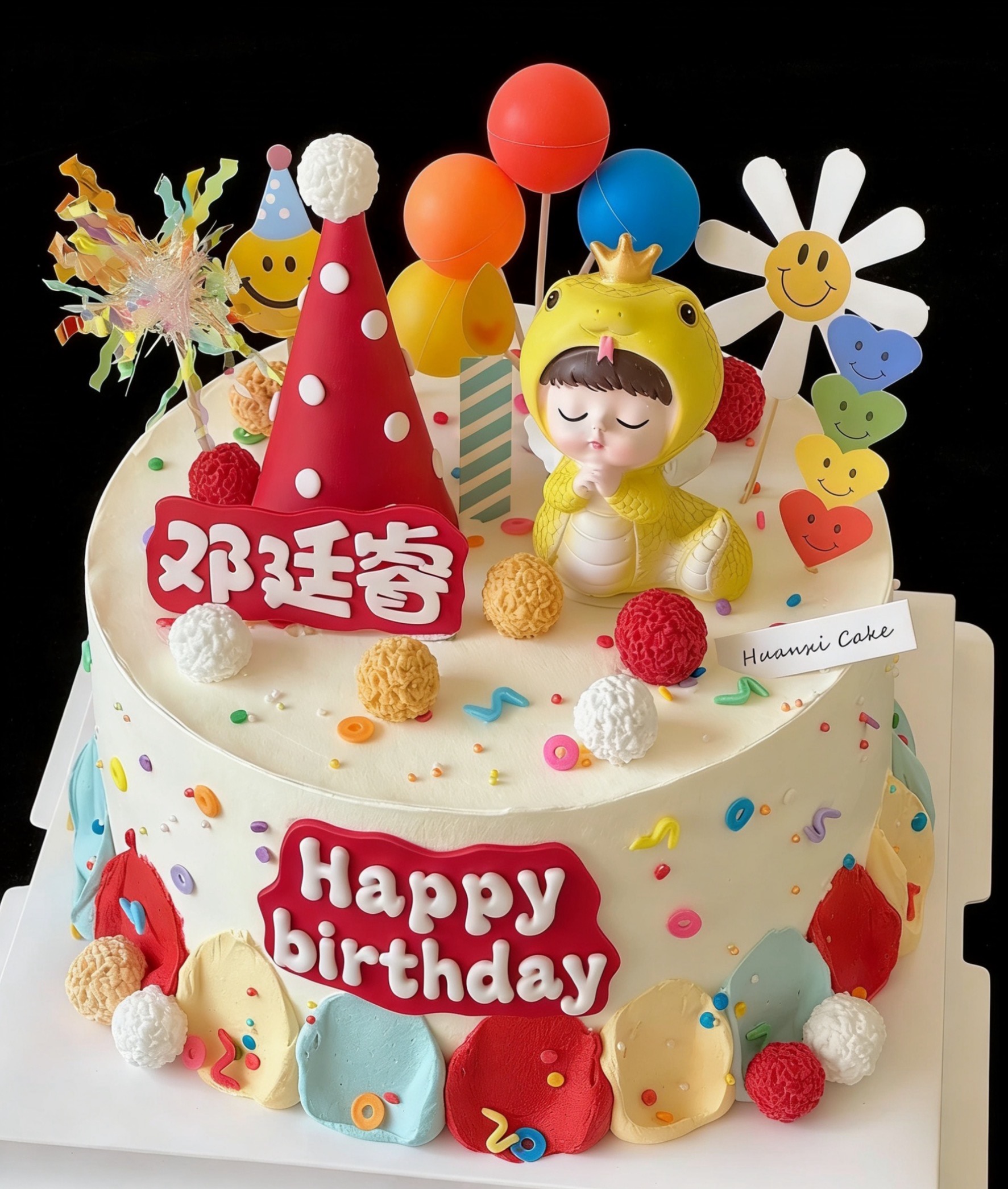 【臻品系列】---半翻糖【多彩蛇宝宝】蛋糕