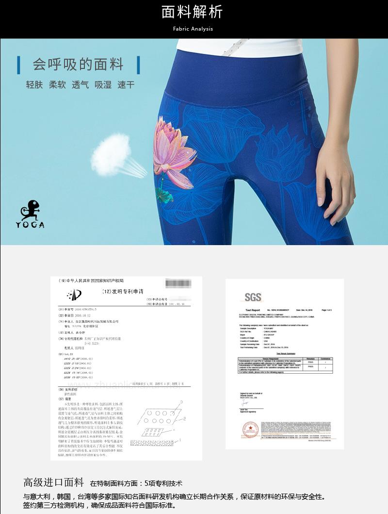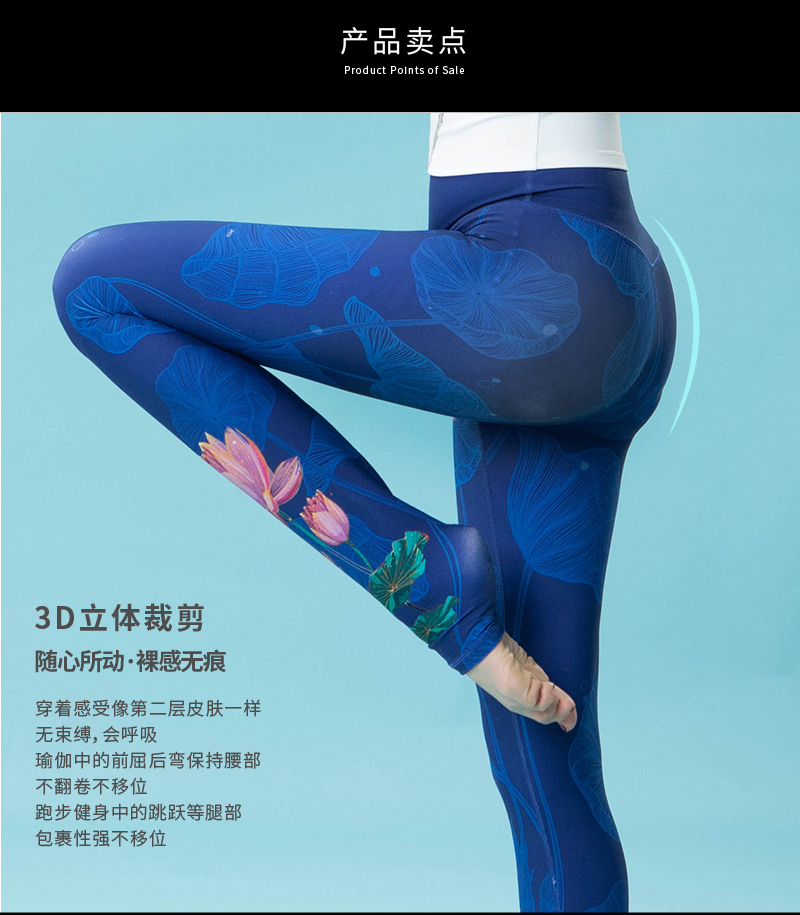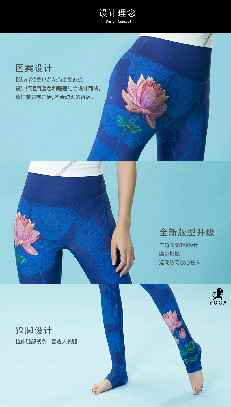 壁虎瑜伽《蓝莲花》限量款印花瑜伽12分裤【可定制】(标准码)