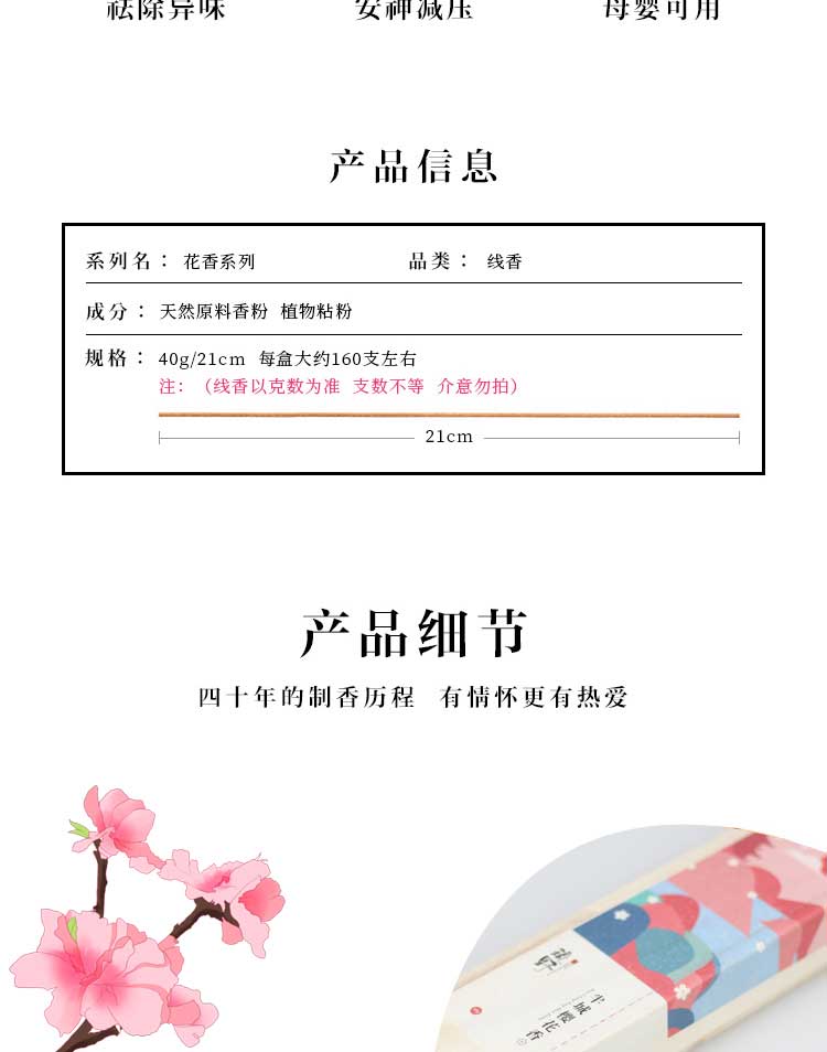 天然樱花线香 檀香合香 家用室内香薰 净化空气