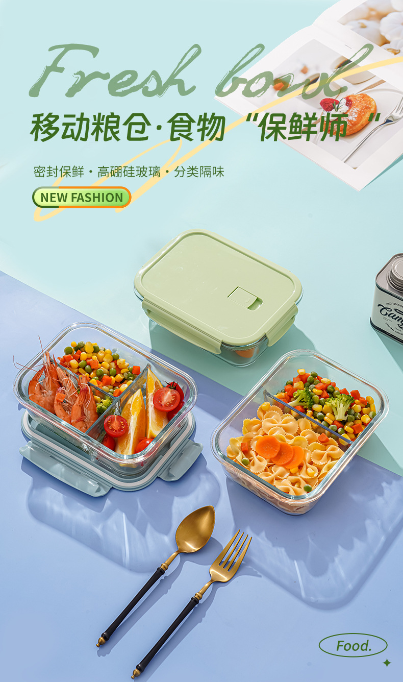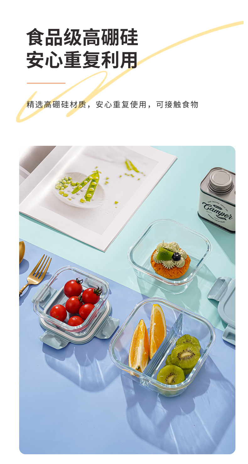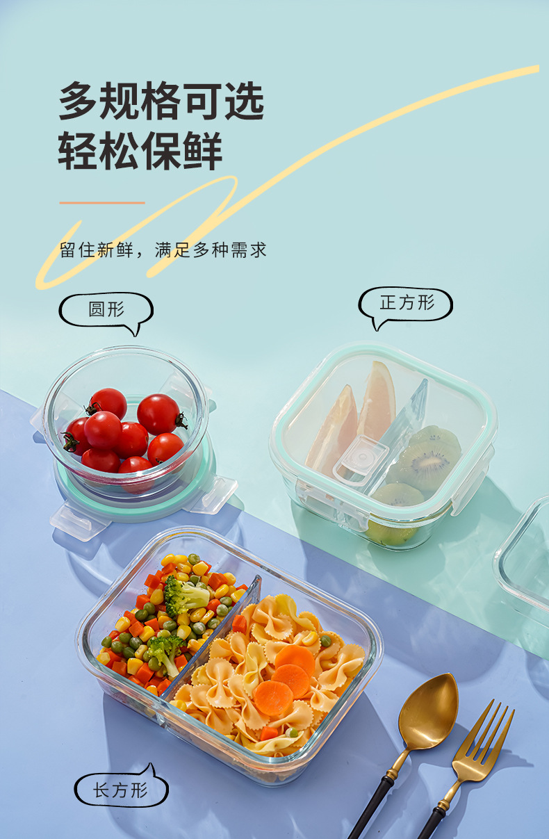 【食品级高硼硅❗️安心重复利用】玻璃饭盒玻璃碗透明微波炉长方形保鲜盒耐高温便当盒家用圆形饭盒。ja