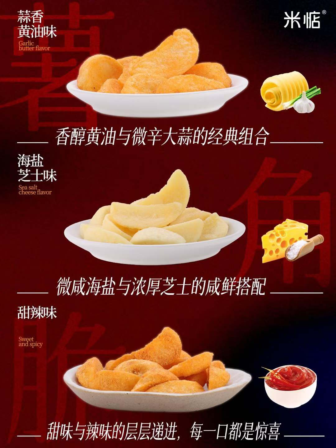 ✅ 多种口味选择:甜辣&海盐芝士&蒜香黄油