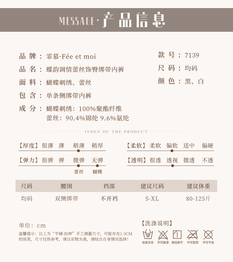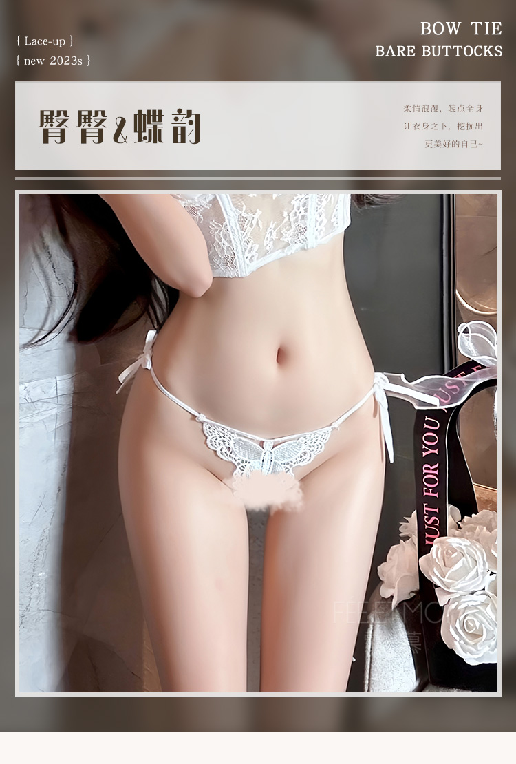 霏慕蝶韵调情蕾丝饰臀绑带内裤7139女士性感情趣内衣 成人情趣用品 臀臀蝶韵黑【单条侧绑带内裤】