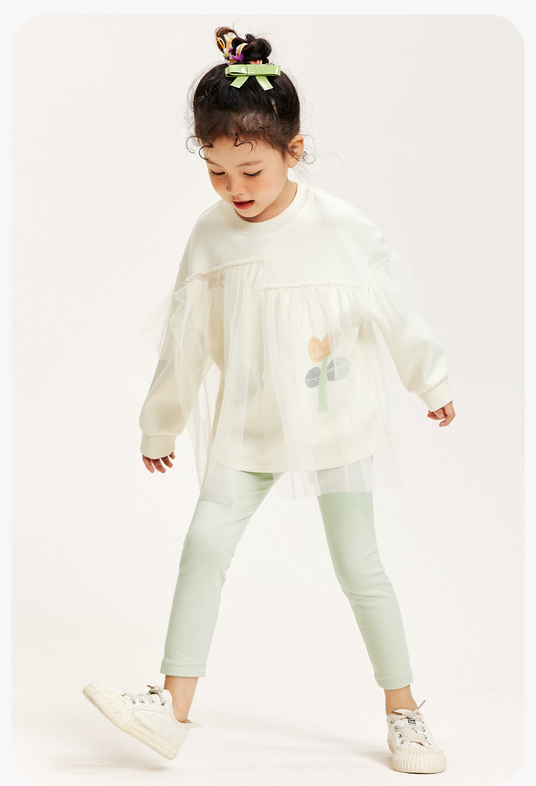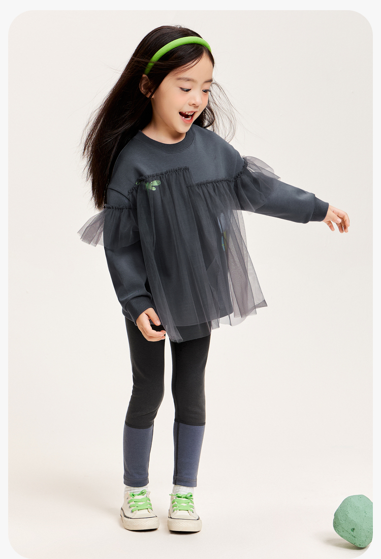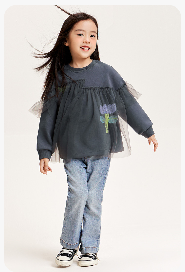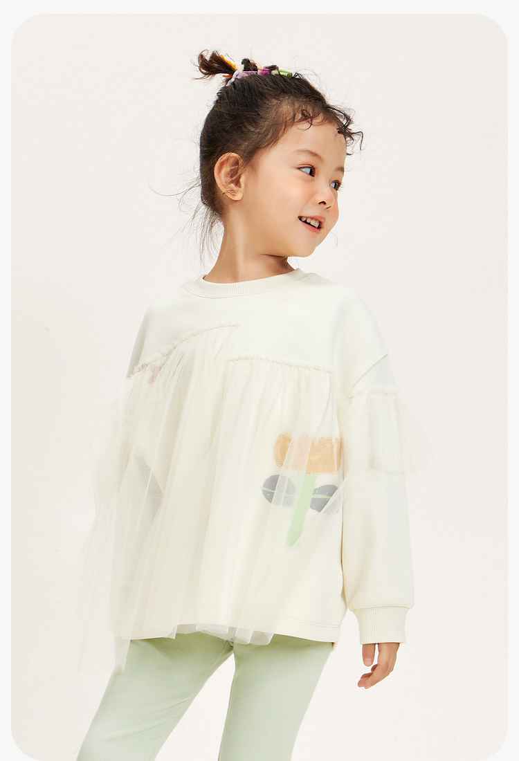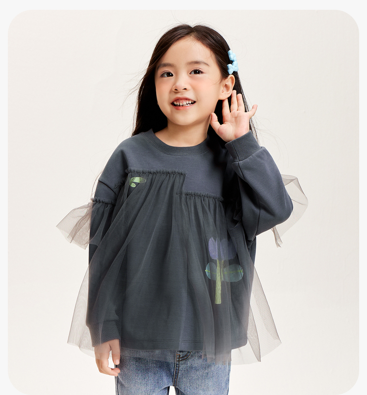 迷你巴拉女童卫衣春季宝宝时尚甜美网纱拼接儿童长袖上衣