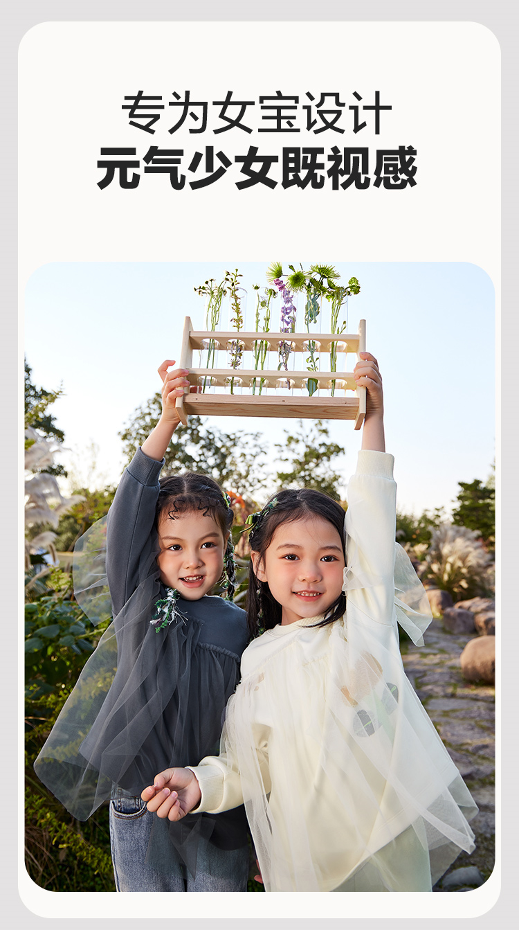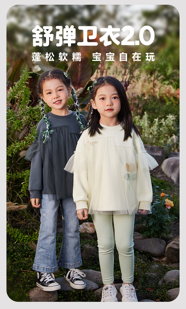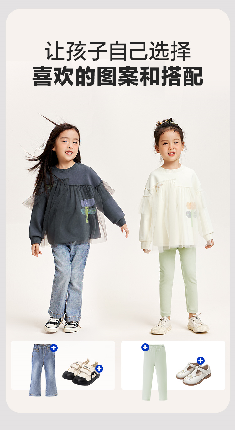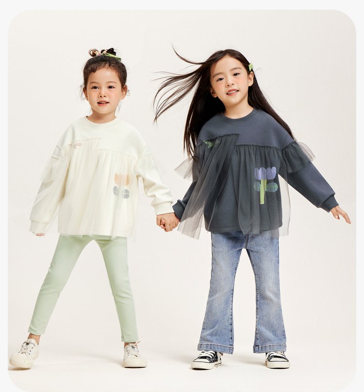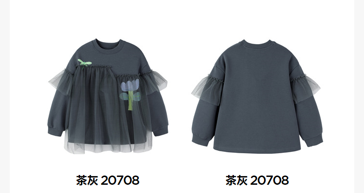迷你巴拉女童卫衣春季宝宝时尚甜美网纱拼接儿童长袖上衣