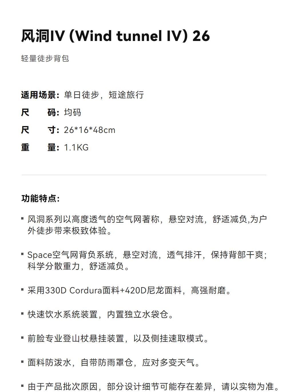KAILAS凯乐石 户外运动 风洞IV (Wind tunnel IV) 26轻量徒步背包KA2453007【Z】