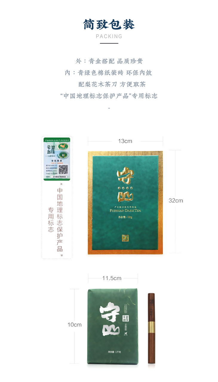 云台崖 黑茶湖南安化正品守山正宗湖南特产金花茯砖茶叶礼盒装1kg 云台崖航天原生茶基地--青云观