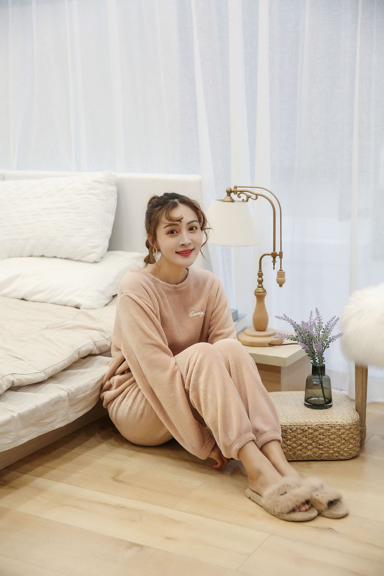 【瑜伽生活家】700克加厚秋冬加绒珊瑚绒内衣休闲家居服仙女暖暖裤套装