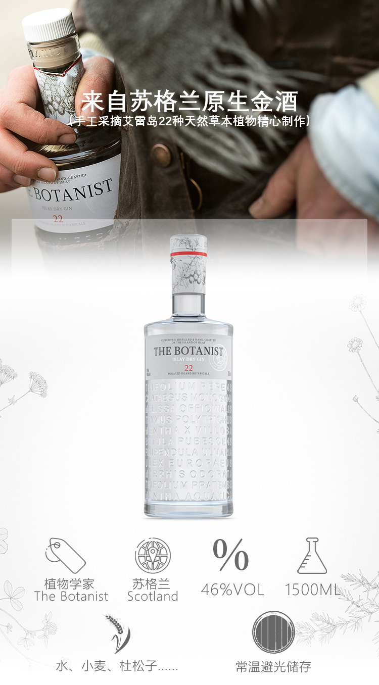 植物学家牌金酒 THE BOTANIST ISLAY DRY GIN 英国洋酒 杜松子酒 1500ml