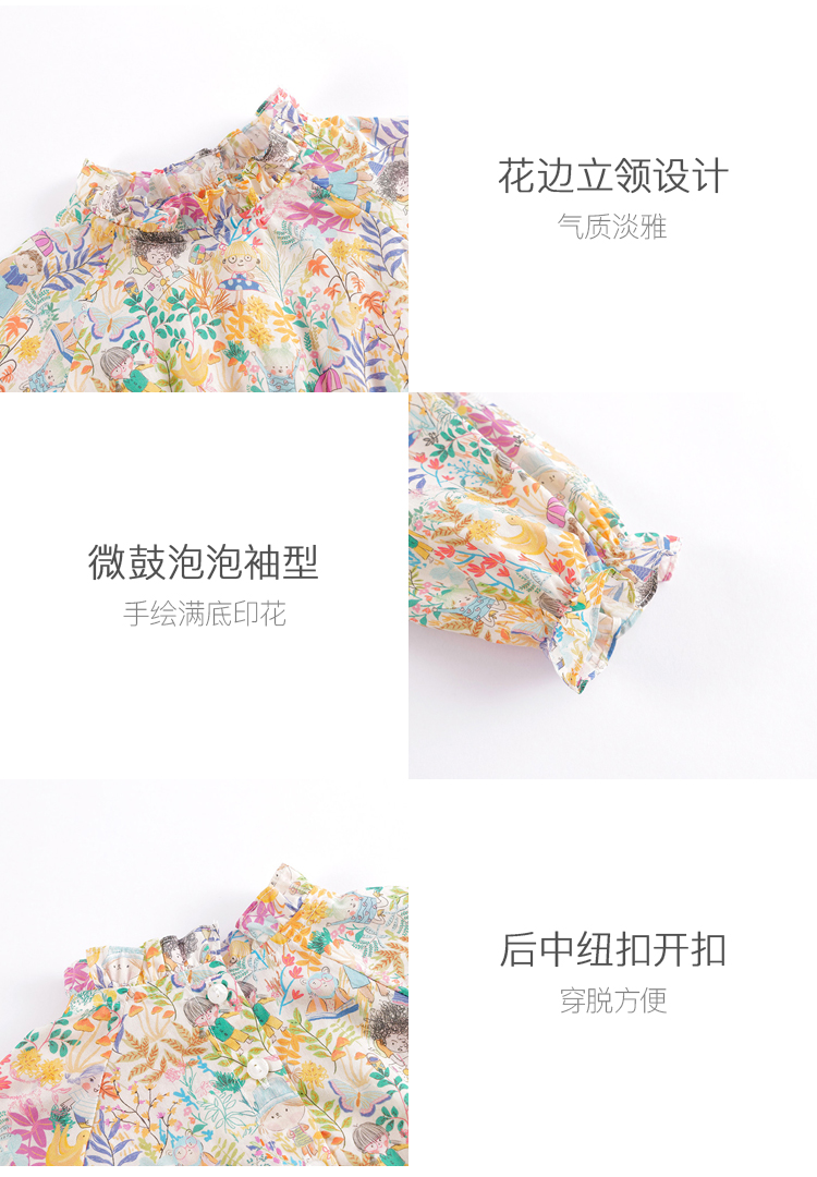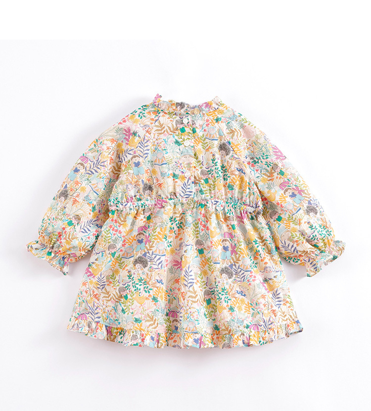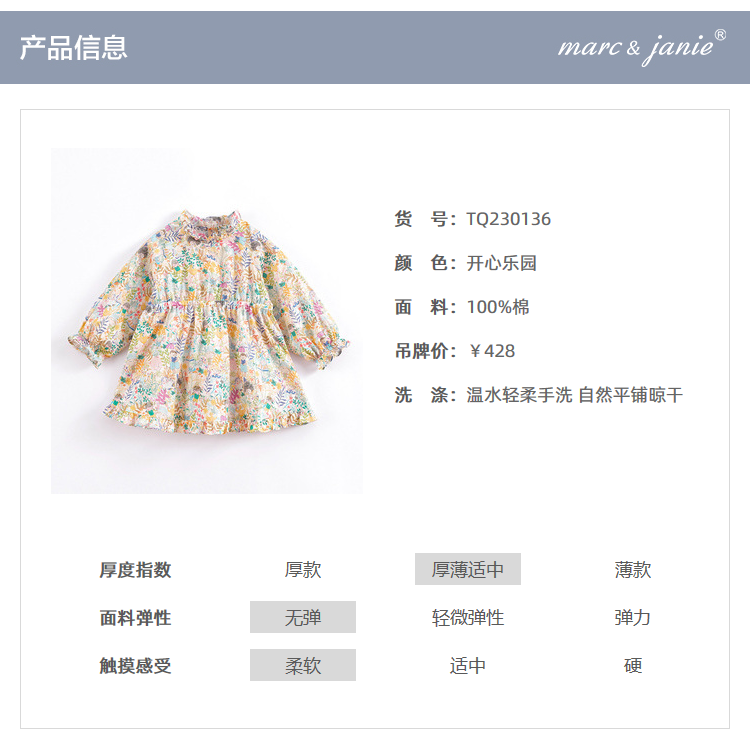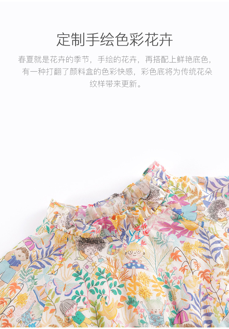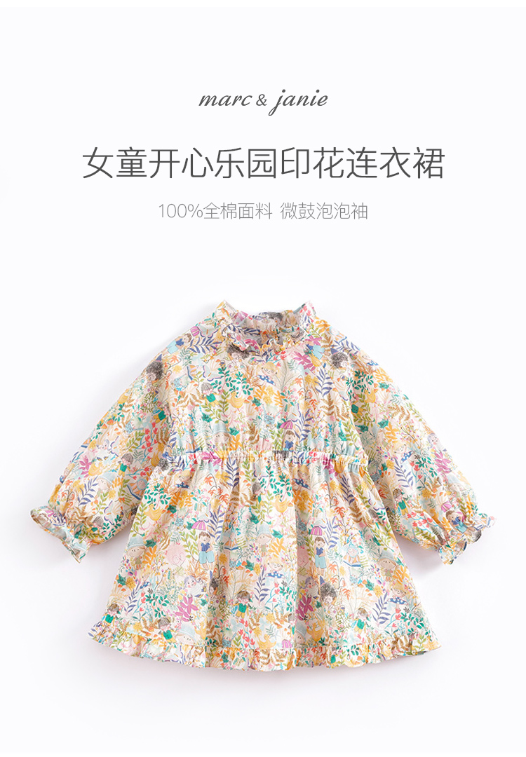 马克珍妮春装新款 女童开心乐园全棉花边领连衣裙230136