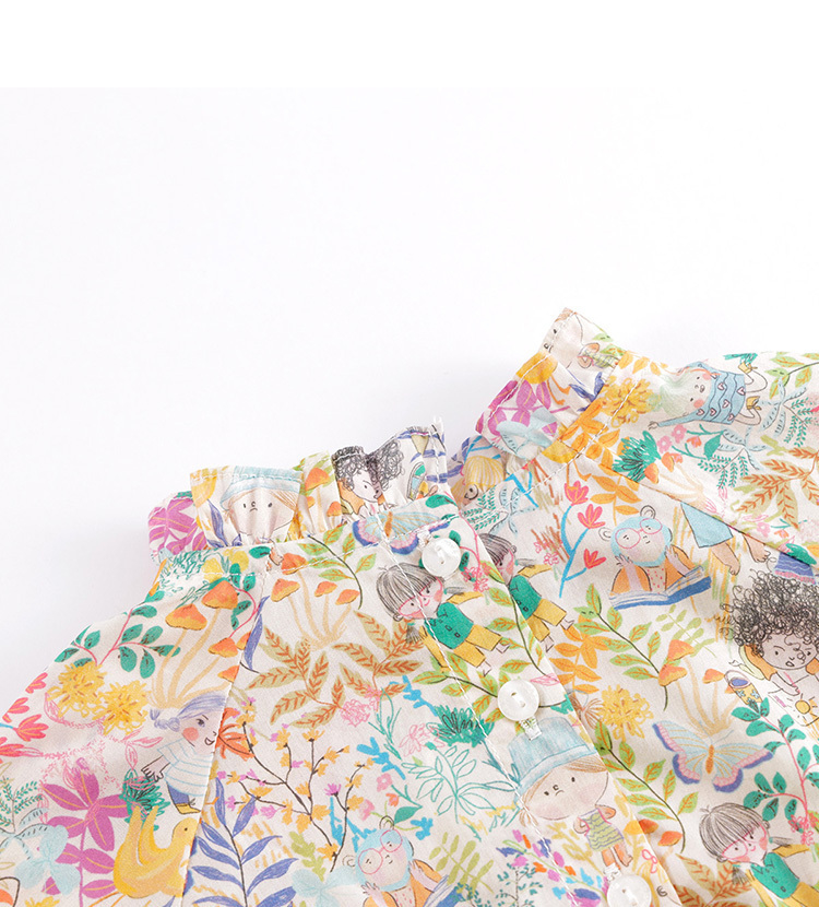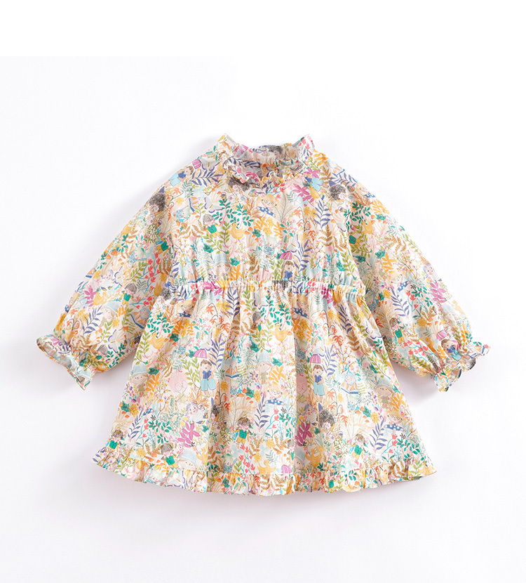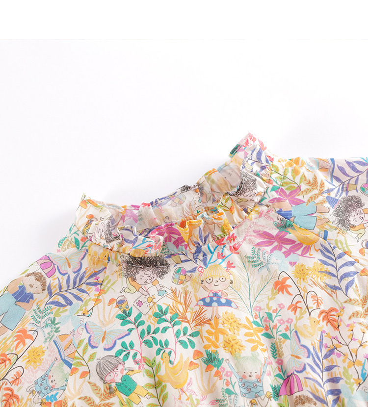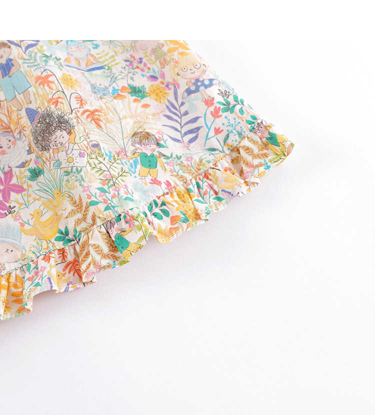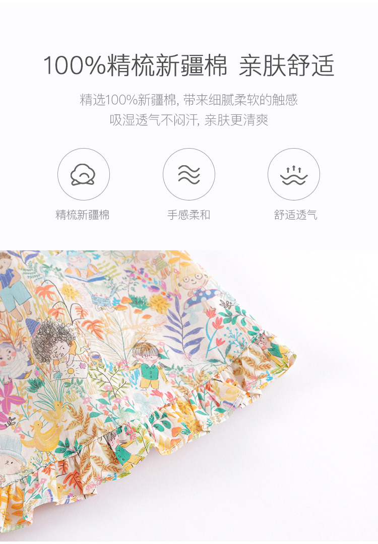 马克珍妮春装新款 女童开心乐园全棉花边领连衣裙230136