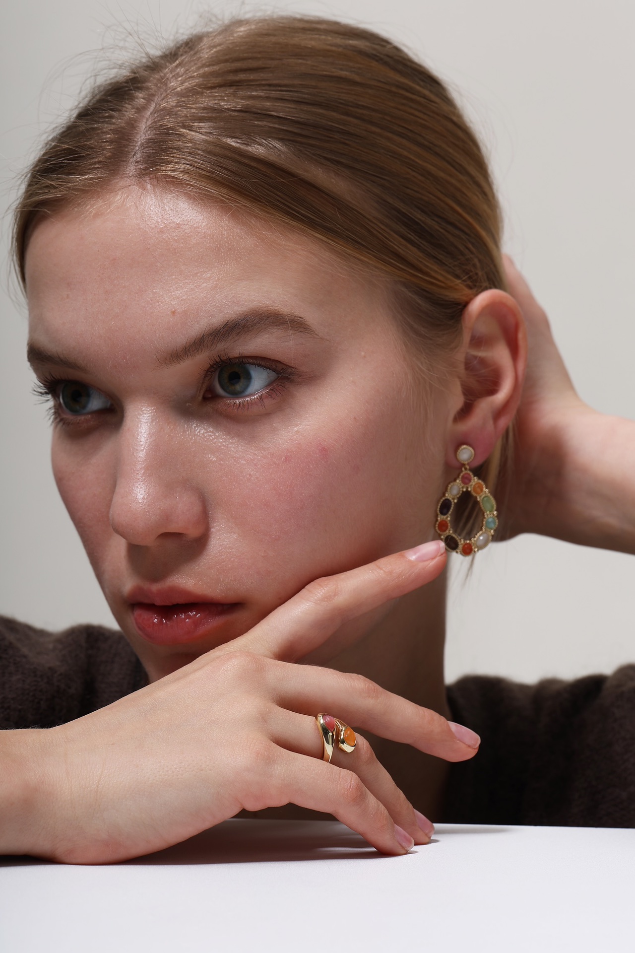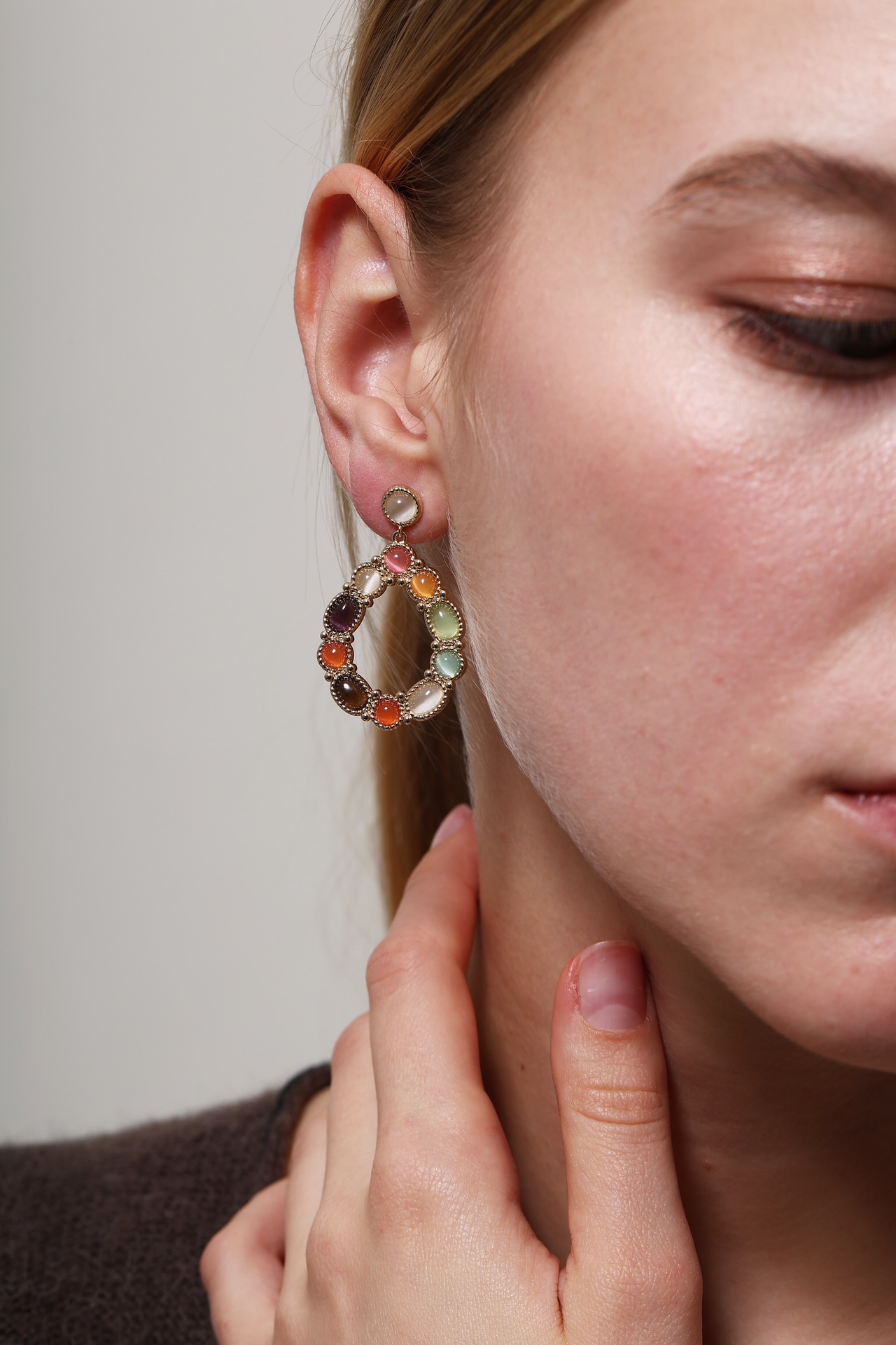 SOL DE VERANO 红墙系列天然猫眼石耳环