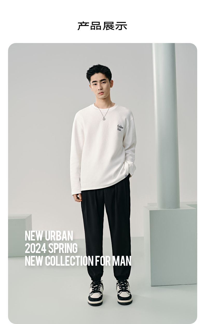 GXG男装 多色肌理面料简约休闲宽松长袖圆领T恤 春季热卖