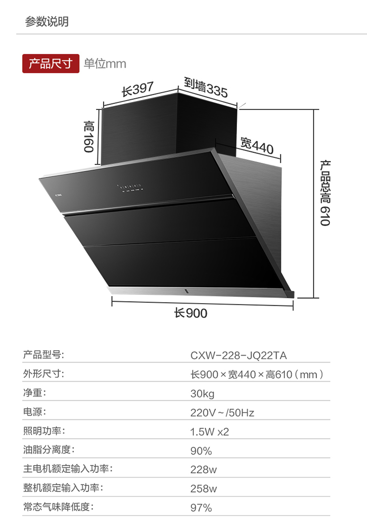 方太20立方JQ22TA侧吸式近吸式 风魔方直吸直排油烟机