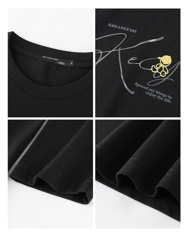 GXG男装【100%棉】秋季简笔熊印花男士圆领长t恤上衣K&C