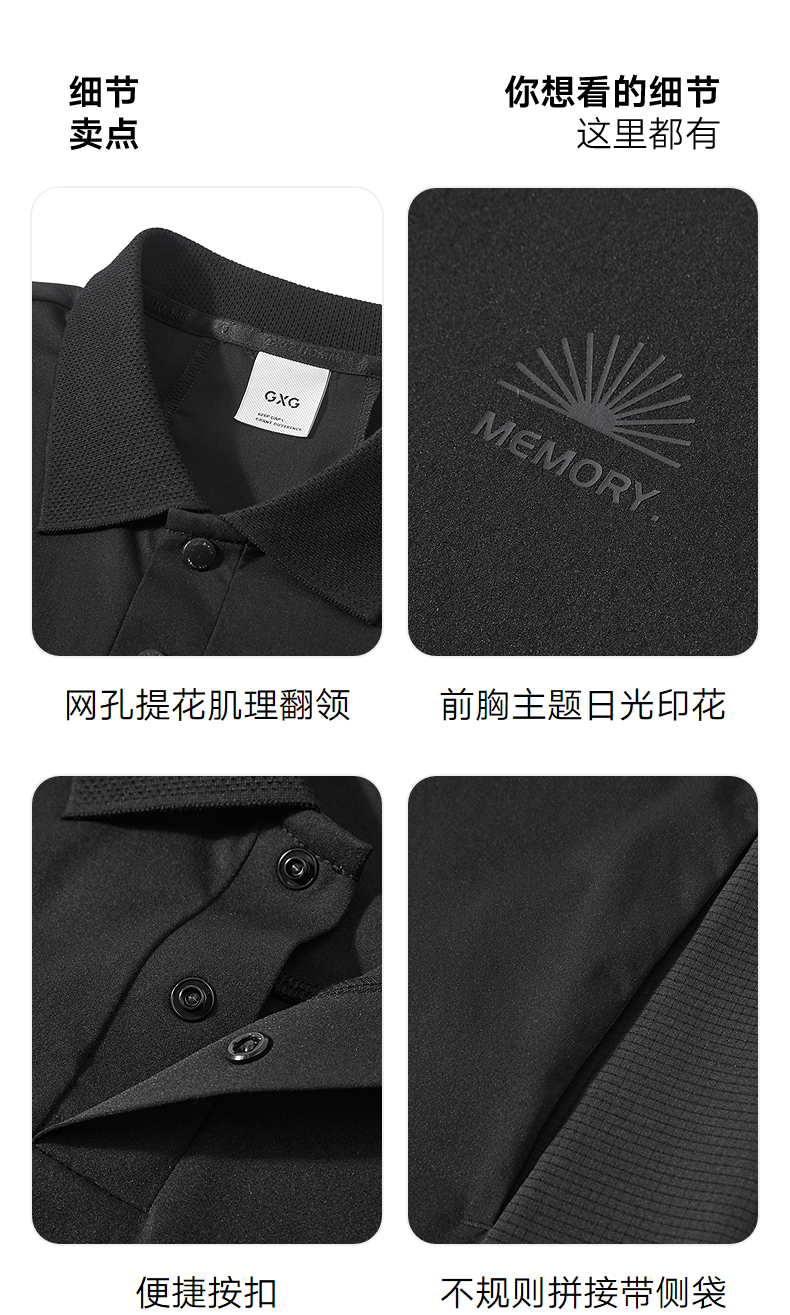 GXG男装 马球衫透气弹力polo衫男士上衣翻领短袖T恤 25夏新品
