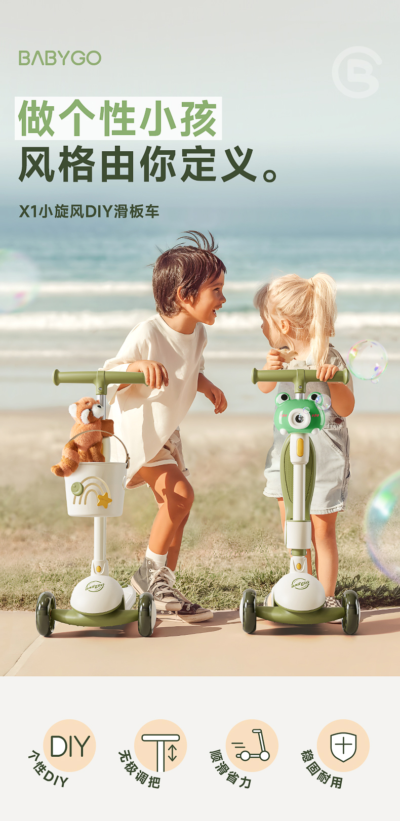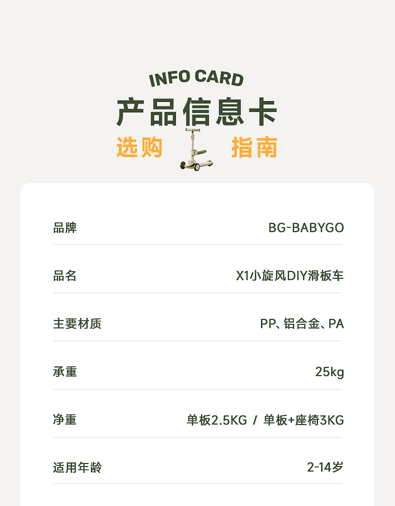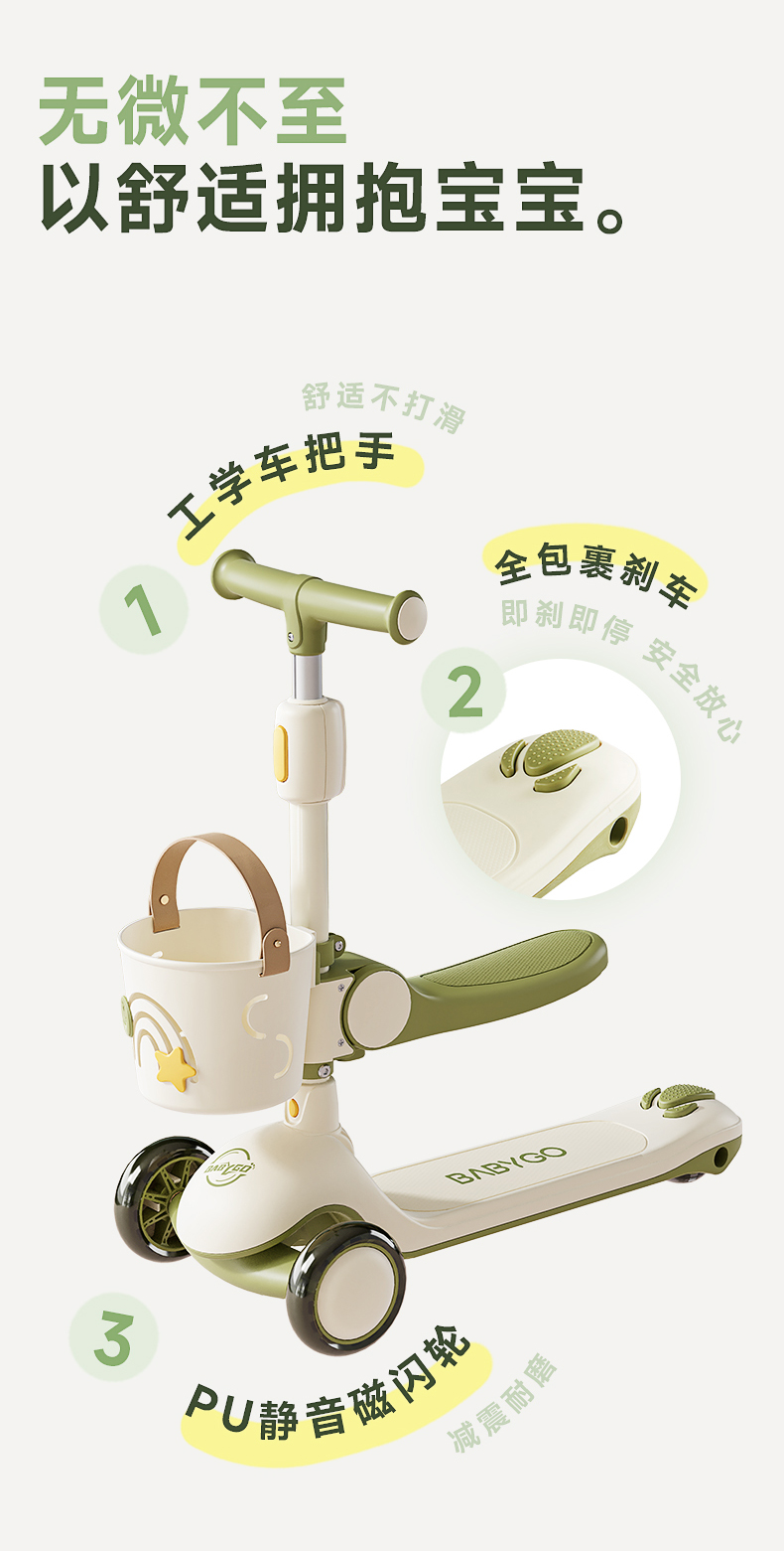 【BG】BABYGO儿童X1滑板车可坐宝宝学步车骑滑车遛娃神器