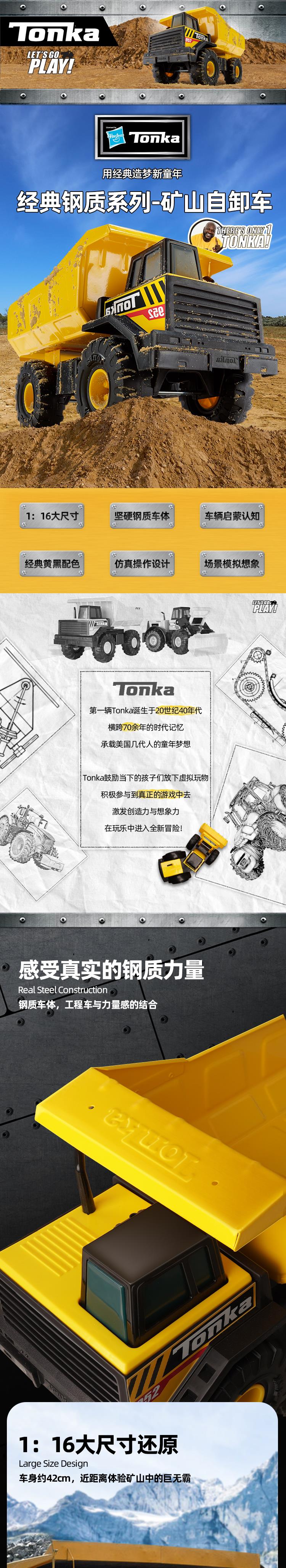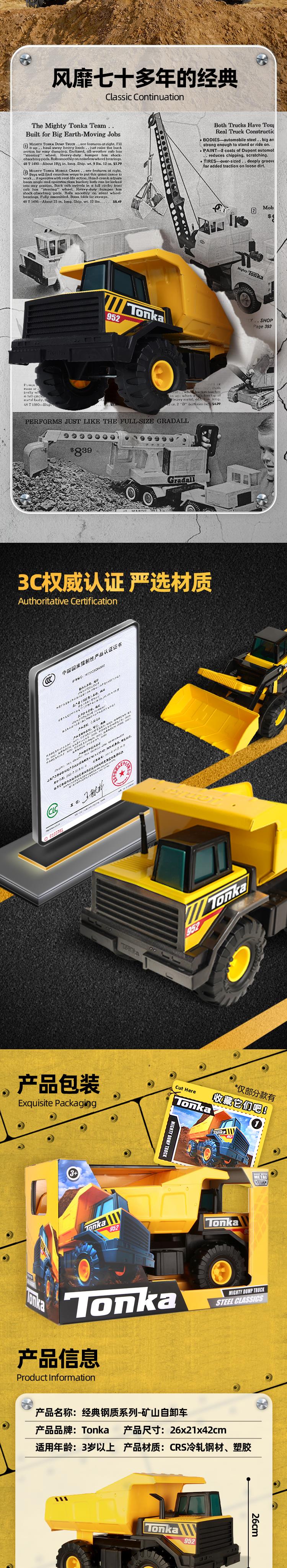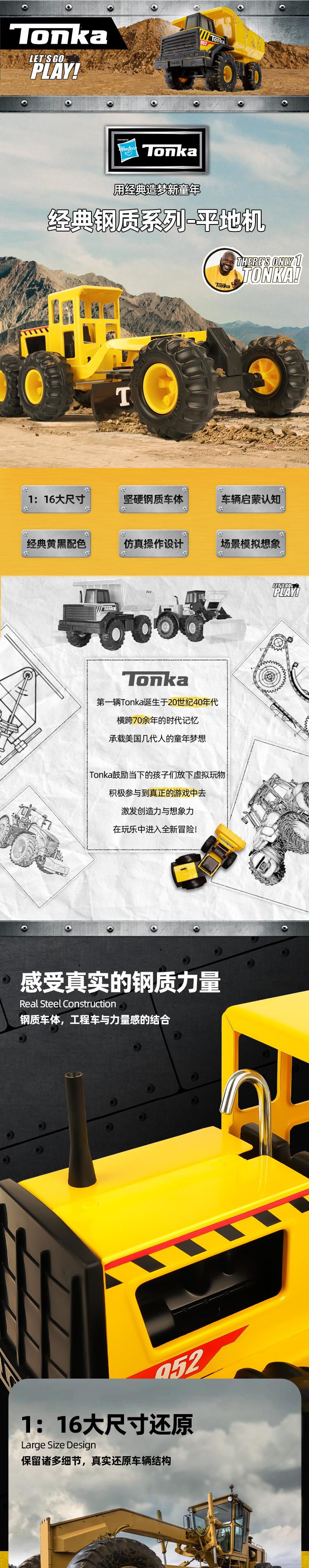 Tonka经典钢质系列 仿真玩具矿山自卸车平地机前置装载机儿童卡车模型-3岁+【玩具】