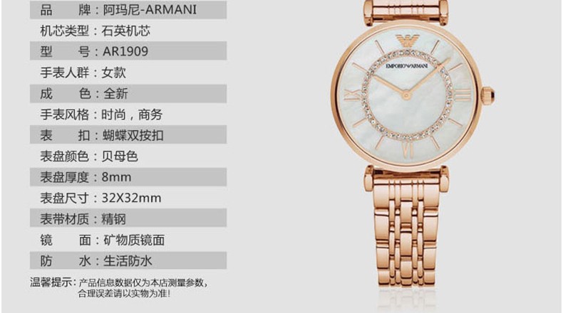ARMANI/阿玛尼 满天星女表 商务时尚简约女士手表JPY带授权招加盟代理