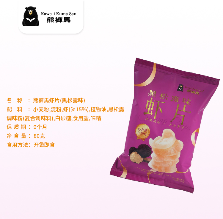 【分仓直发包邮】熊裤马虾片(黑松露味)80g*2袋