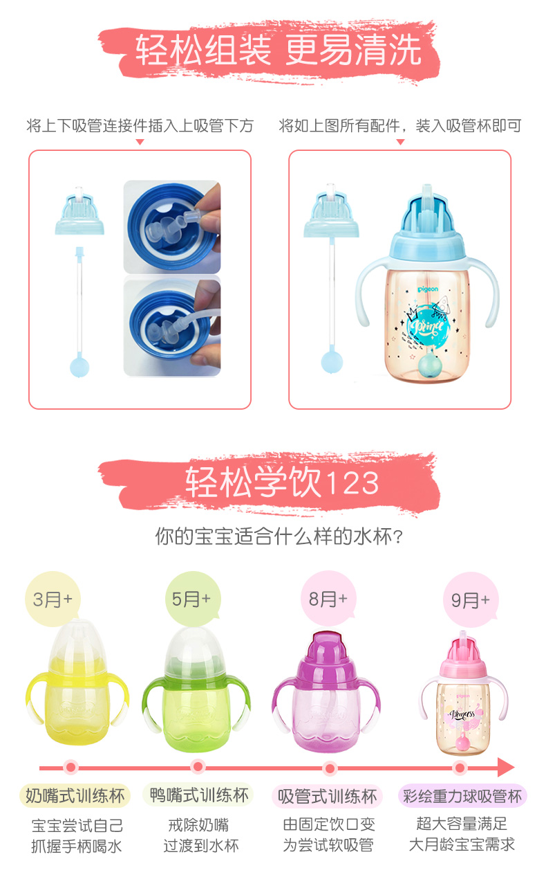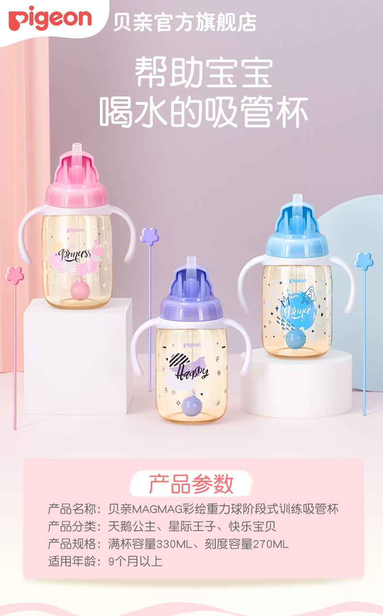 贝亲magmag彩绘重力球阶段式训练吸管杯270ml