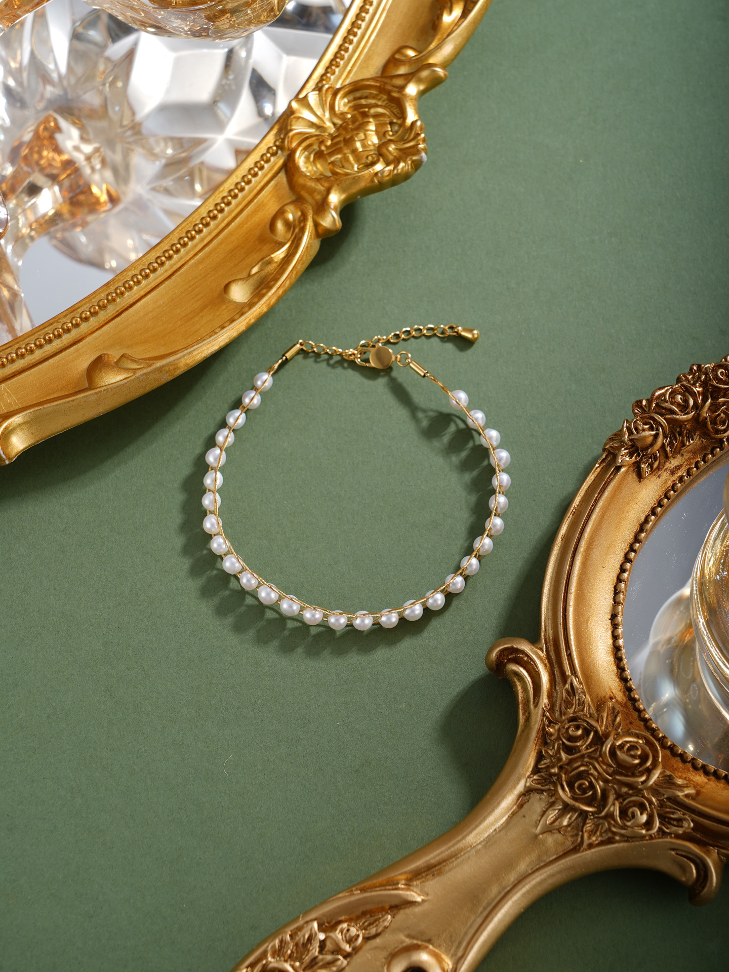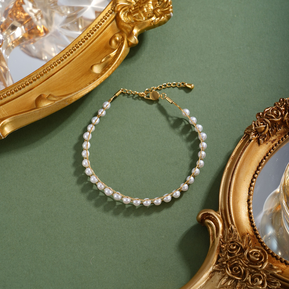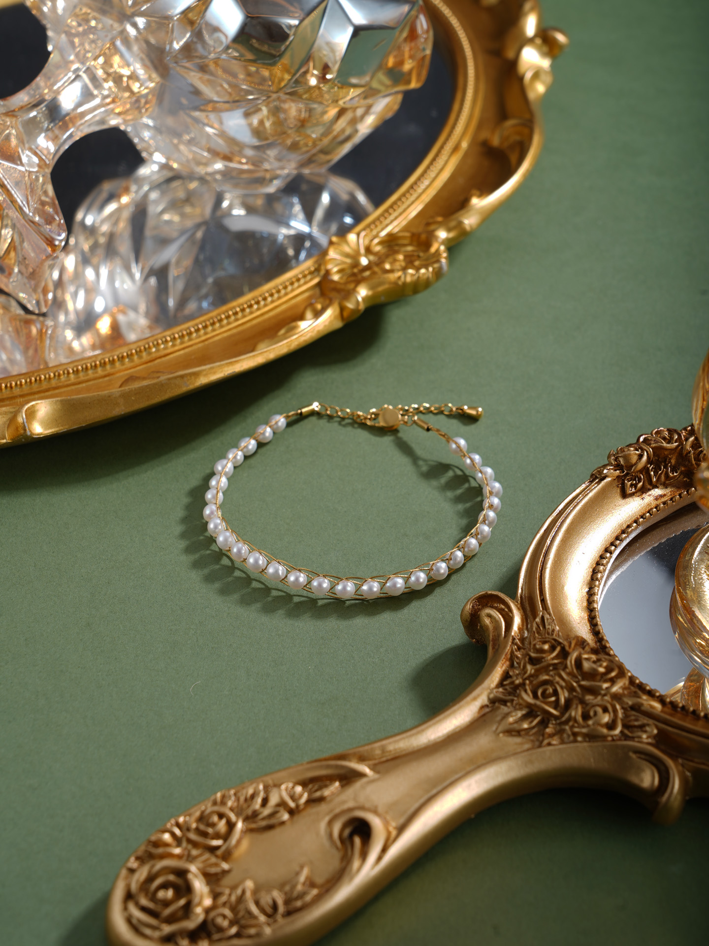 子佩集【韶华履迹】珍珠惜王妃手链【XXSL020】法式编织镀金2602