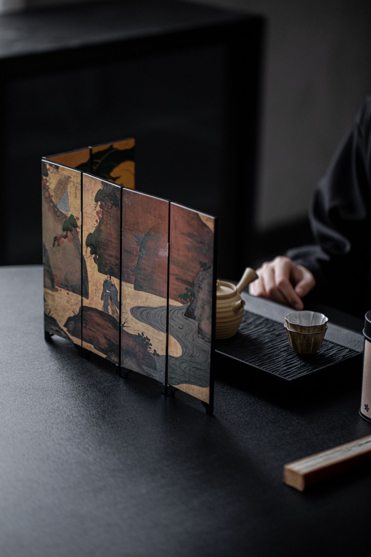 束刻/木质双面小屏风道茶席空间小摆件双面设计工艺品手工多功能精致茶室