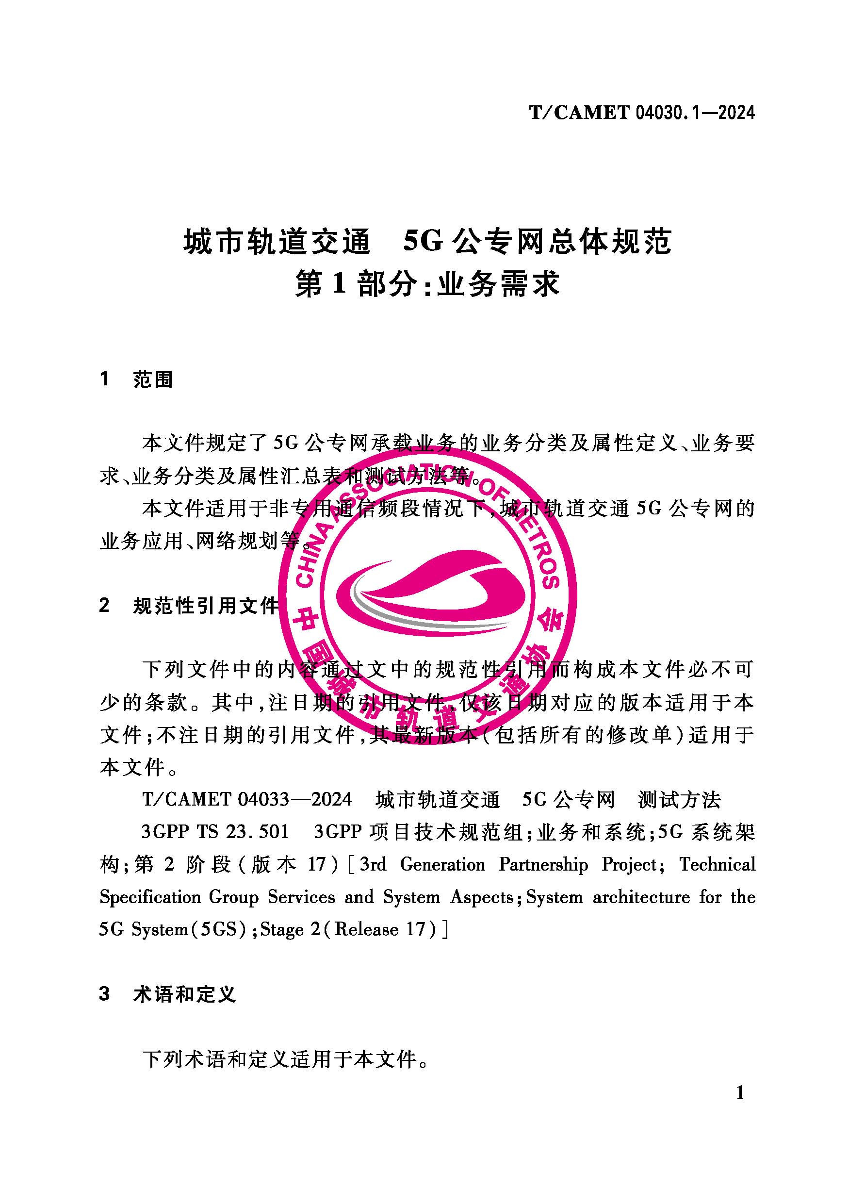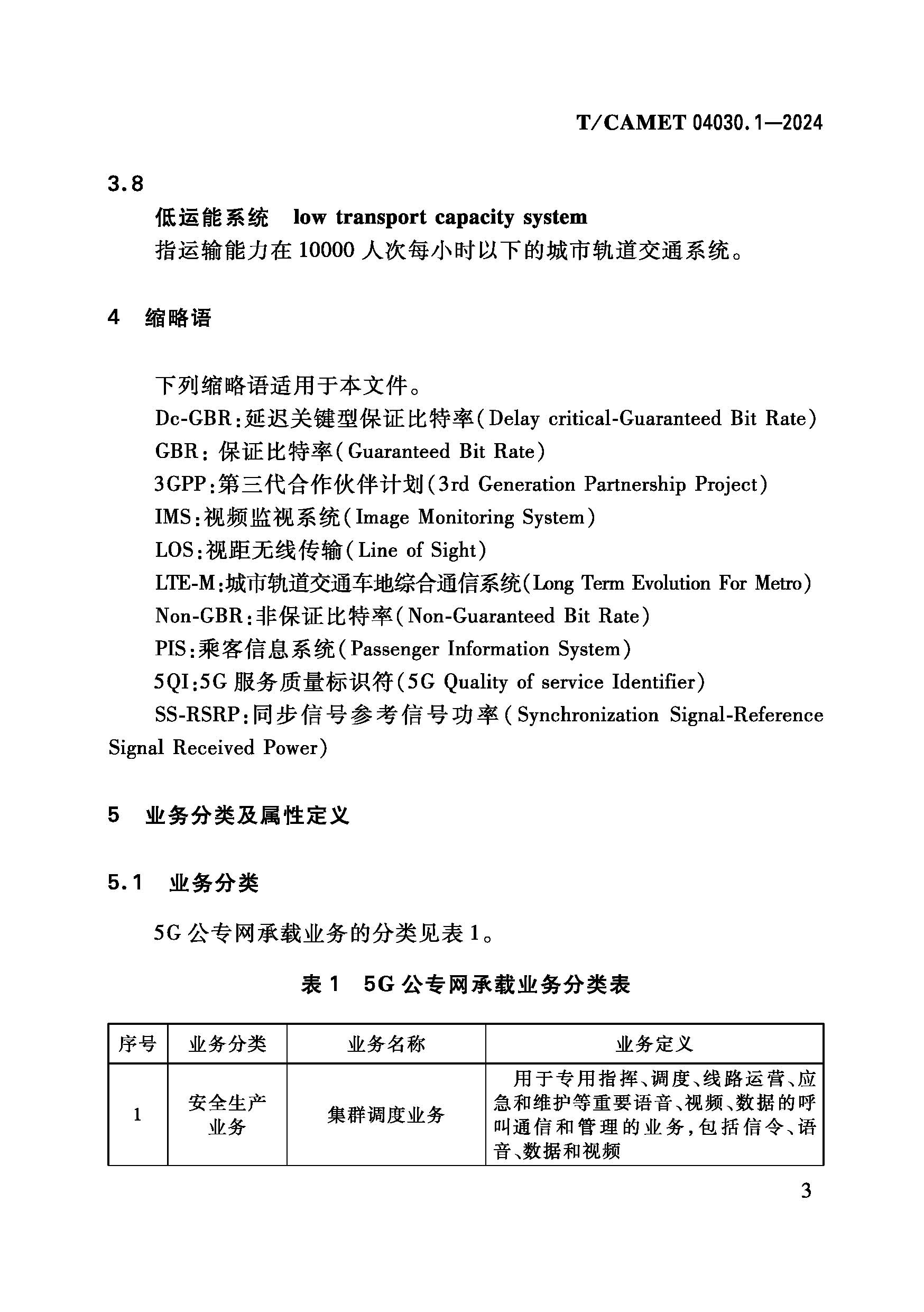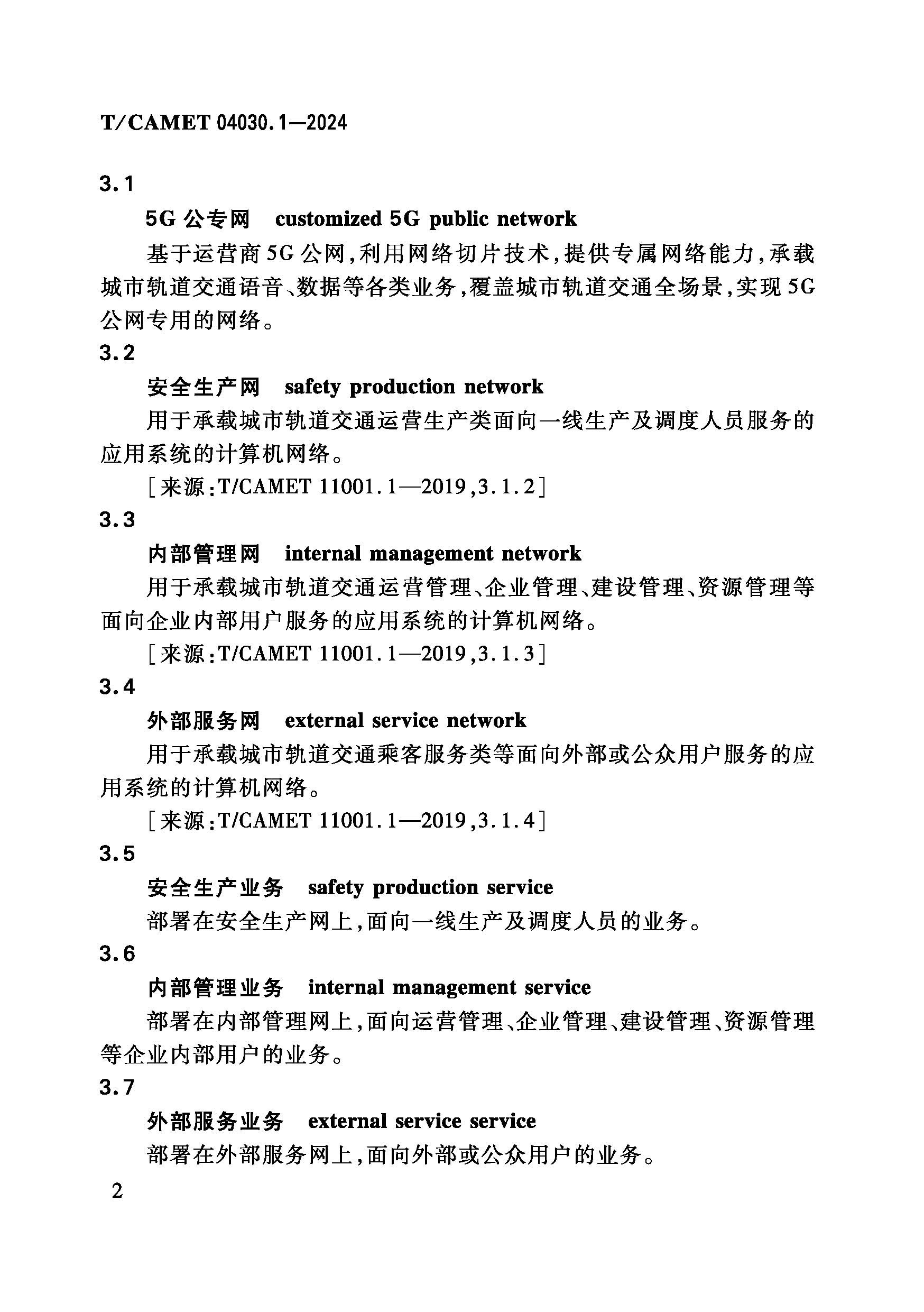 7107 城市轨道交通 5G公专网总体规范 第1部分:业务需求(T/CAMET 04030.1-2024)