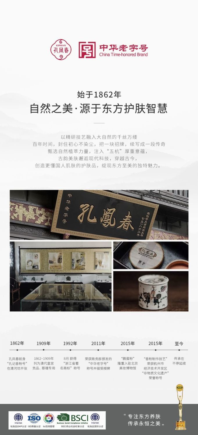 孔凤春是中国历史上记载的化妆品企业,是化妆品行业的“中华老字号”,有着161年的历史,是中国历史上最早的化妆品品牌,位居杭城闻名的“五杭”之首!