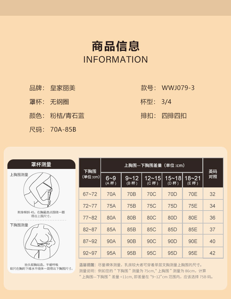 皇家丽美厚款无钢圈内衣女小胸显大文胸WWJ079-3