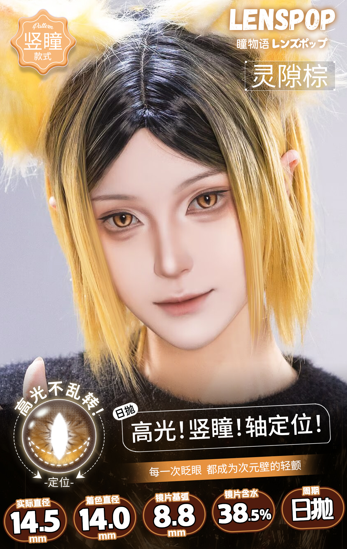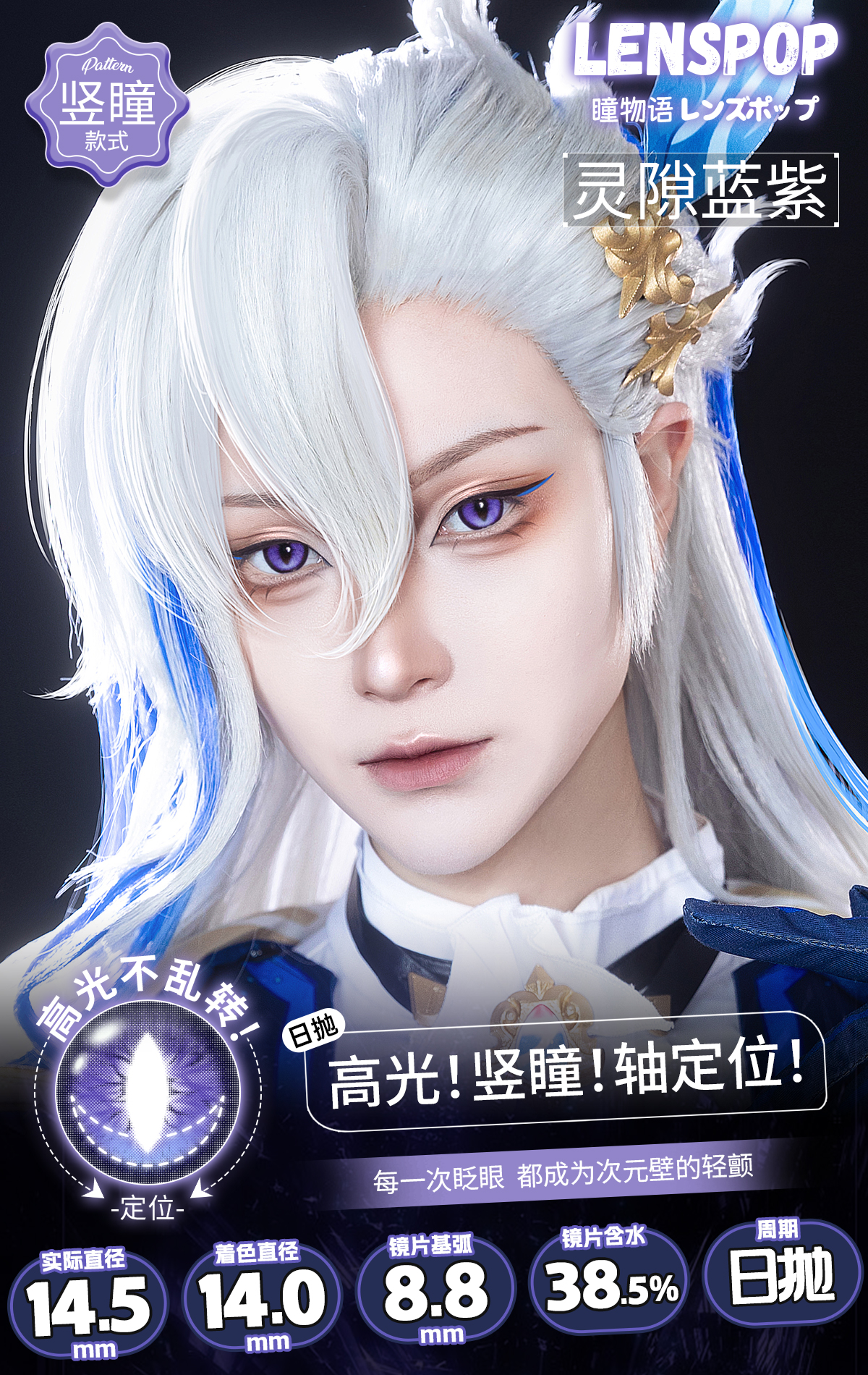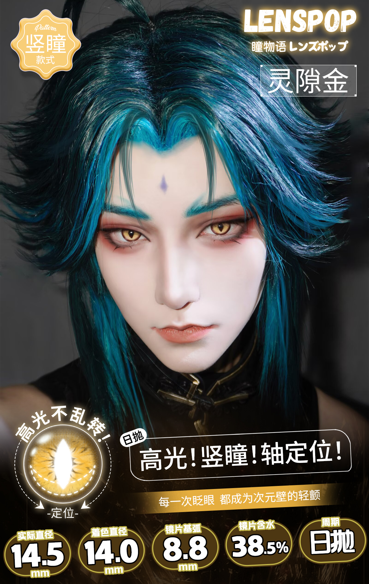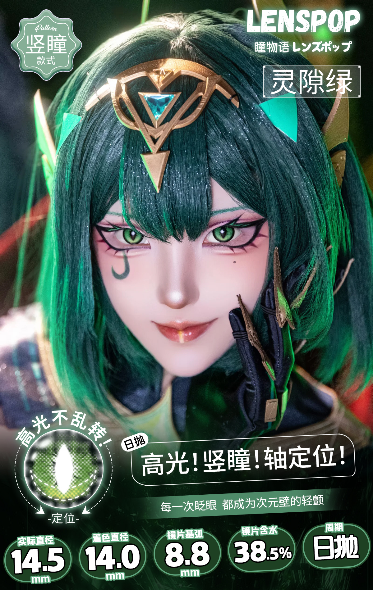 【试戴片】LENSPOP日抛 新品 定轴竖瞳 灵隙系列 灵隙红/灰/蓝紫/绿/金/棕 COS同款 原神/咒术回战/鬼灭之刃 万圣节龙瞳显色款 蛇眼睛氛围感美瞳