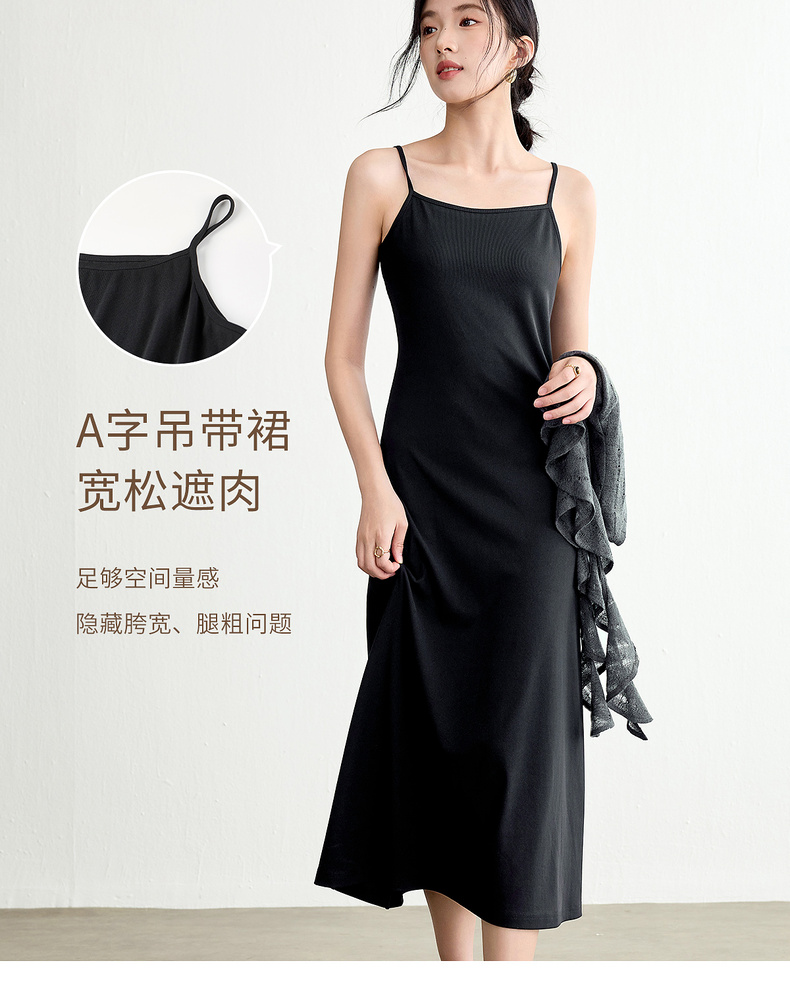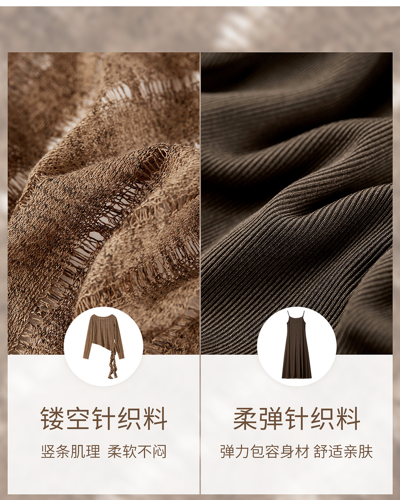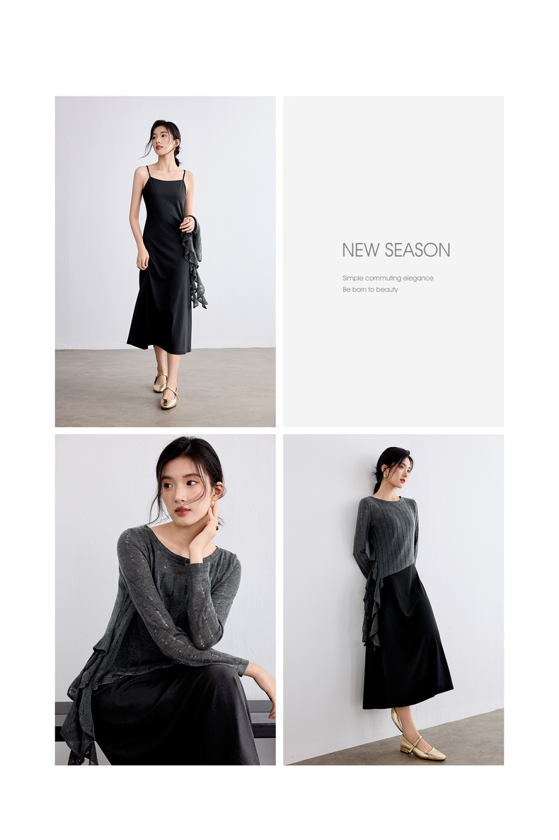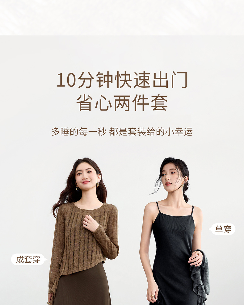 【内购】【免搭配套装】简约通勤圆领针织罩衫&内搭打底A字吊带连衣裙-W53ZB3500
