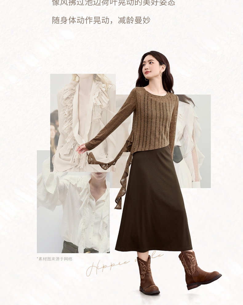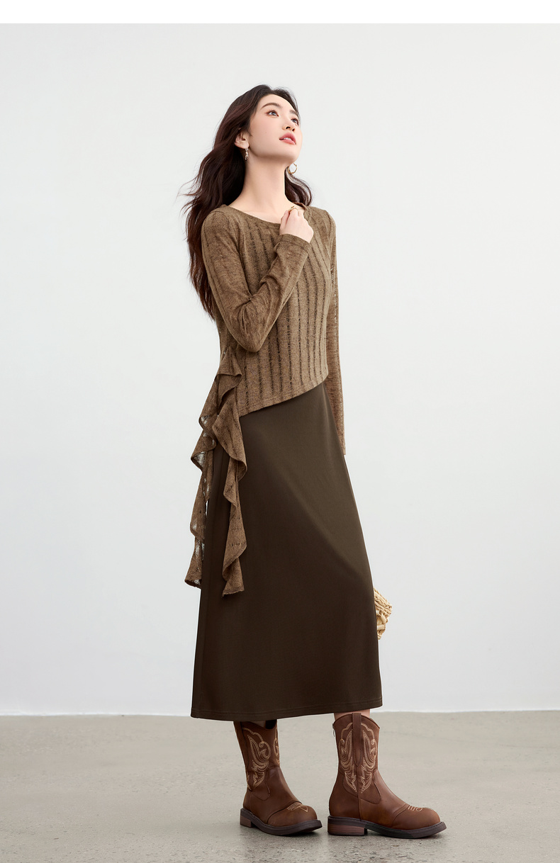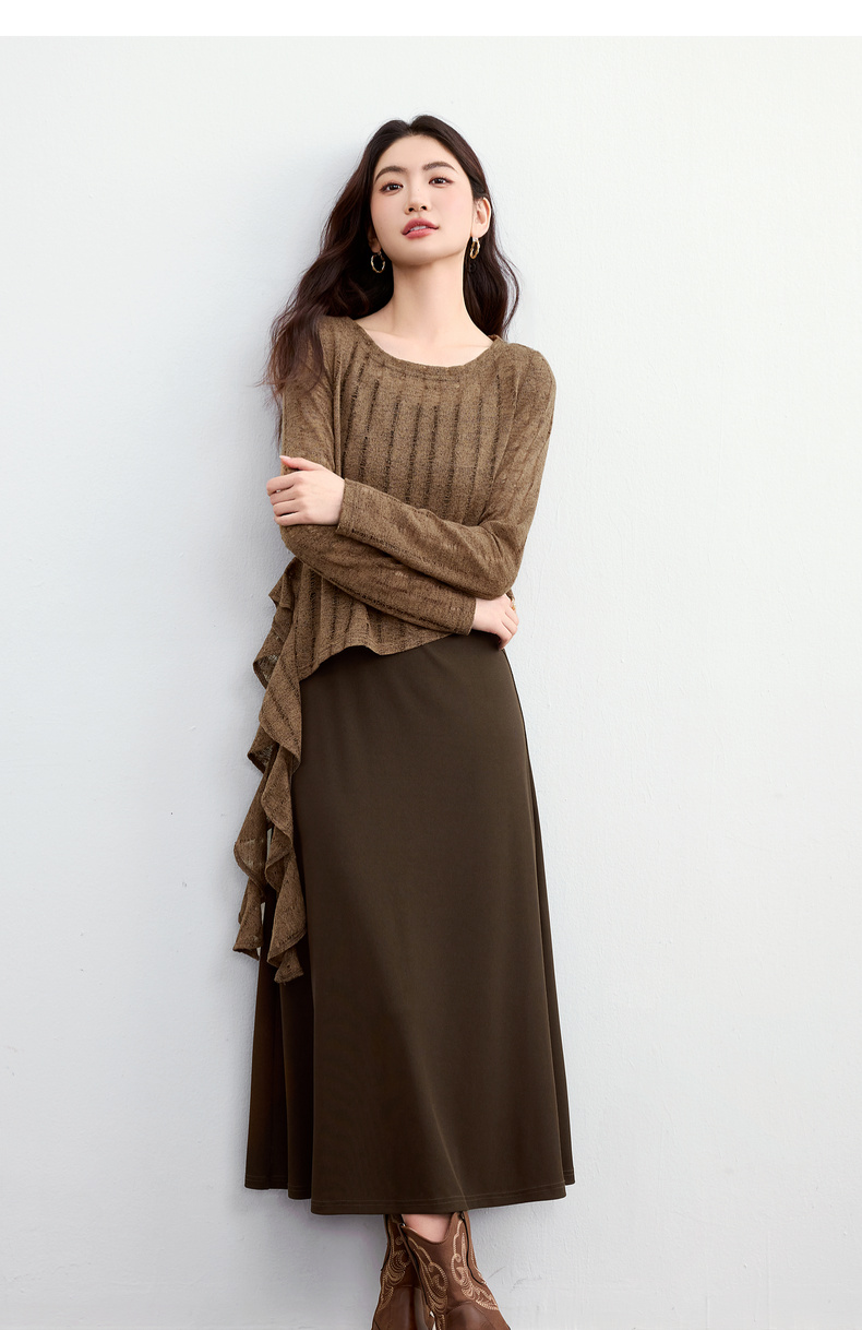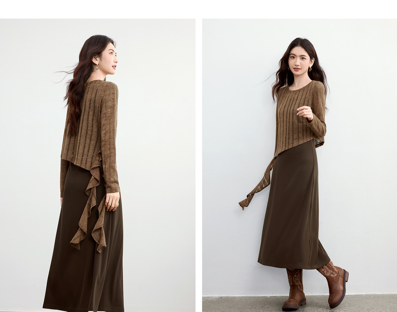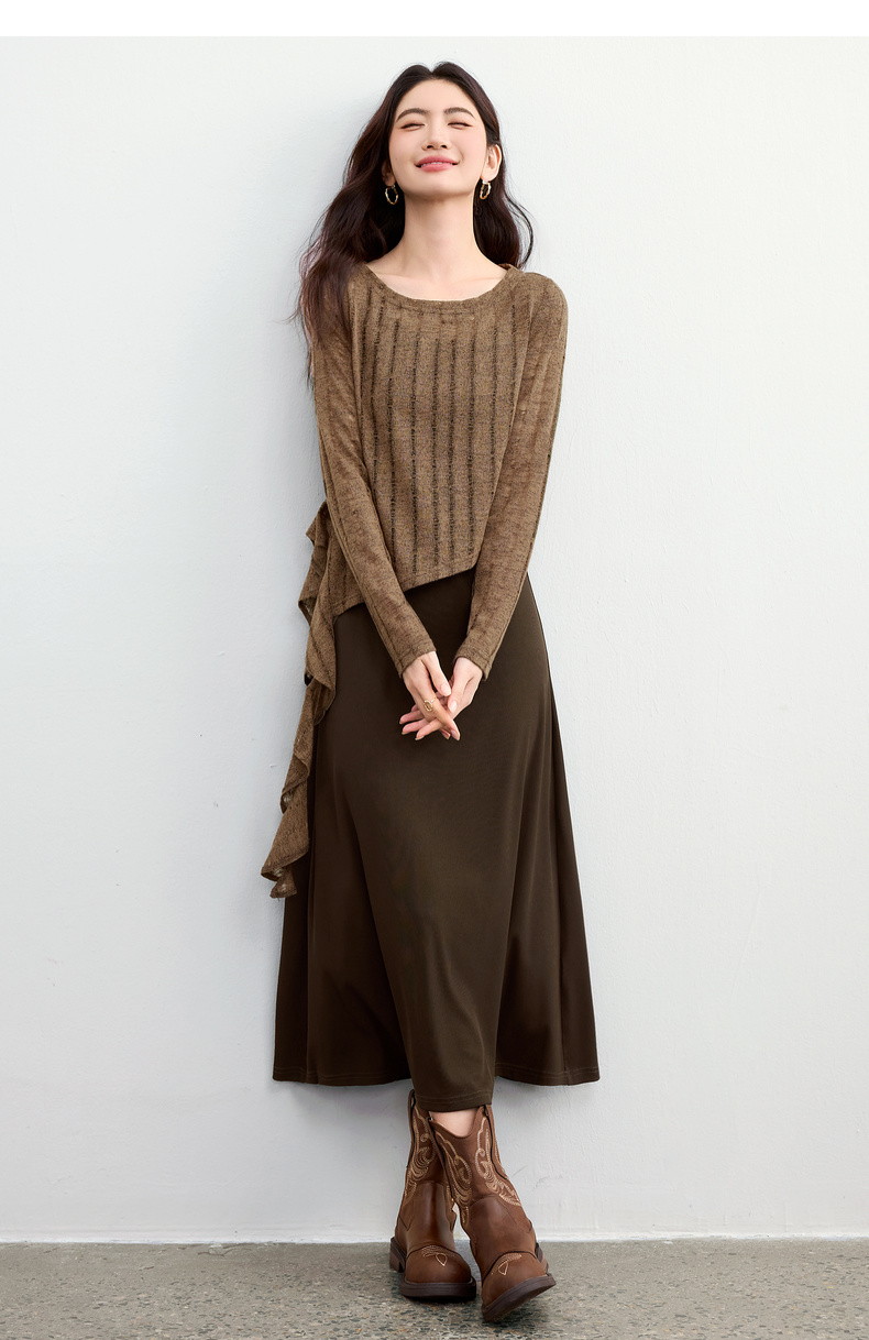【内购】【免搭配套装】简约通勤圆领针织罩衫&内搭打底A字吊带连衣裙-W53ZB3500