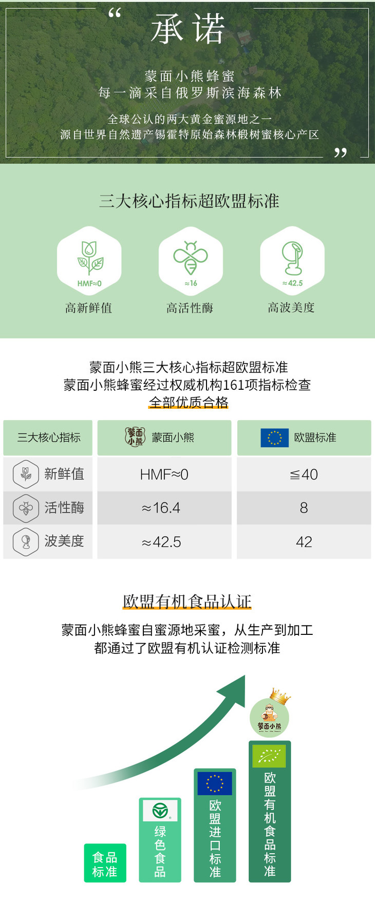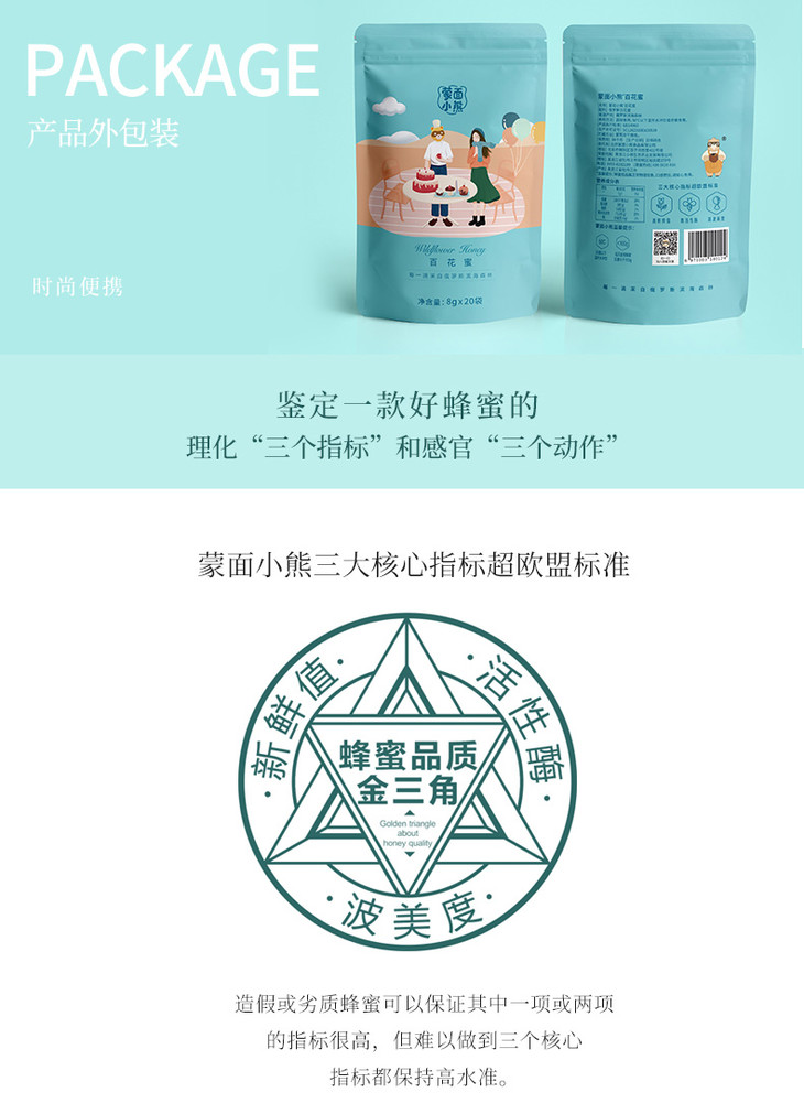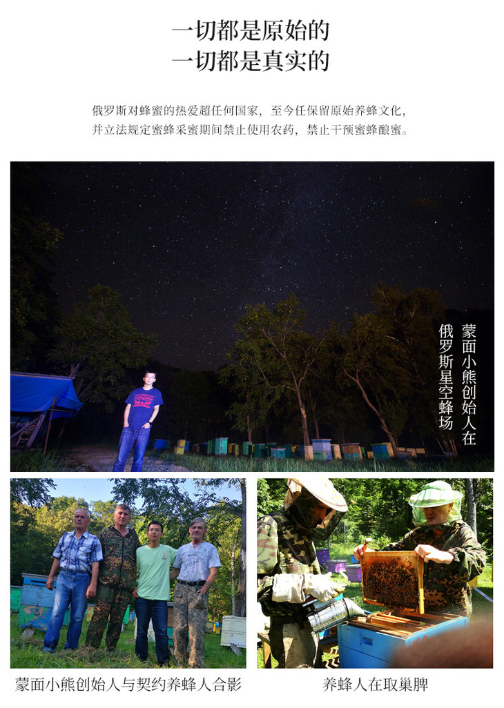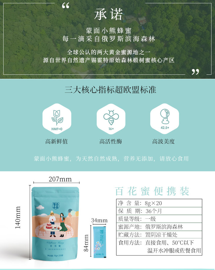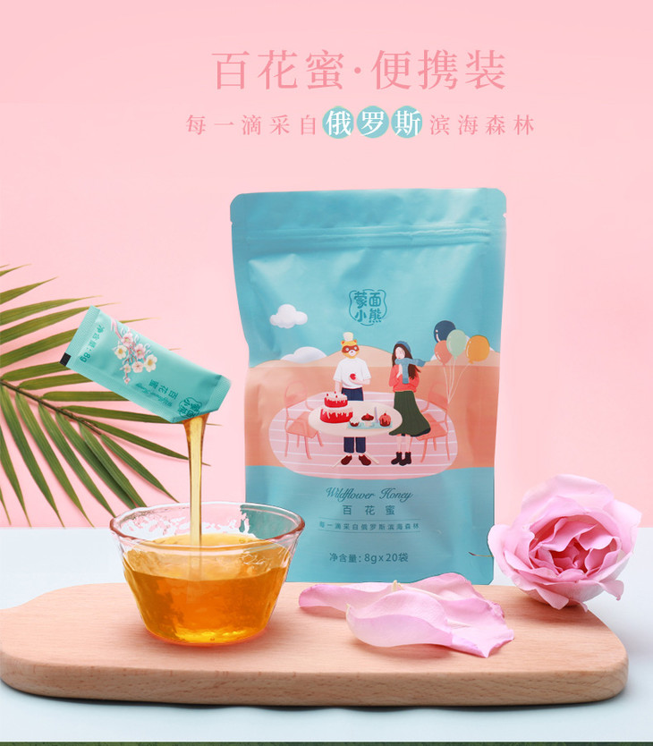 【蒙面小熊】蒙面小熊俄罗斯进口蜜源百花蜜天然15+袋装便携8g*20随身袋装