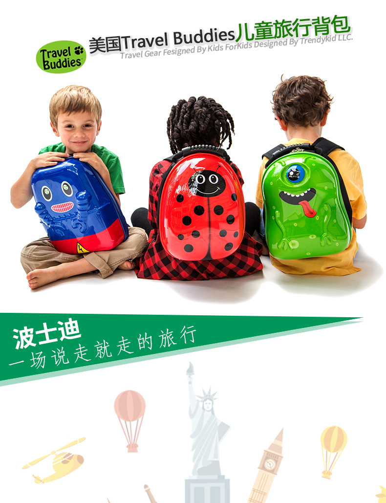 美国 travelbuddies儿童时尚旅行背包幼儿园书包外出包13寸