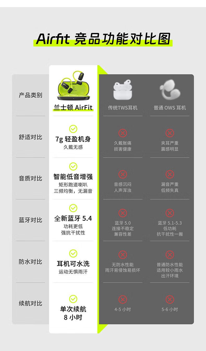 兰士顿AirFit开放式不入耳运动蓝牙耳机气骨传导耳挂2025新款无线 适用于苹果华为小米手机
