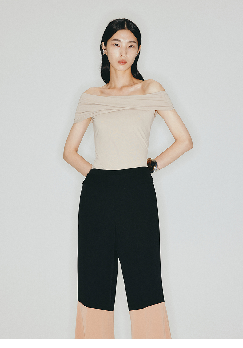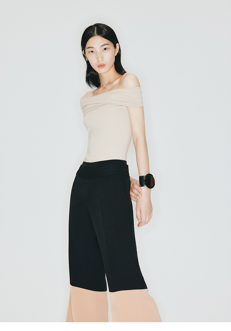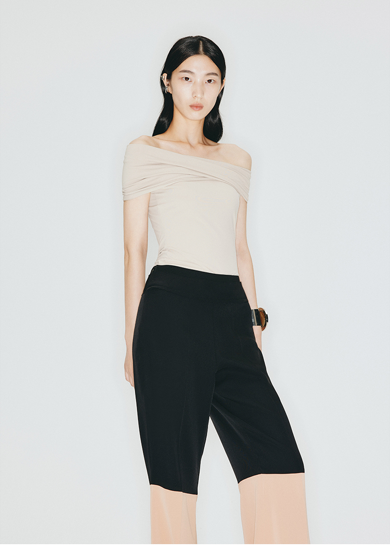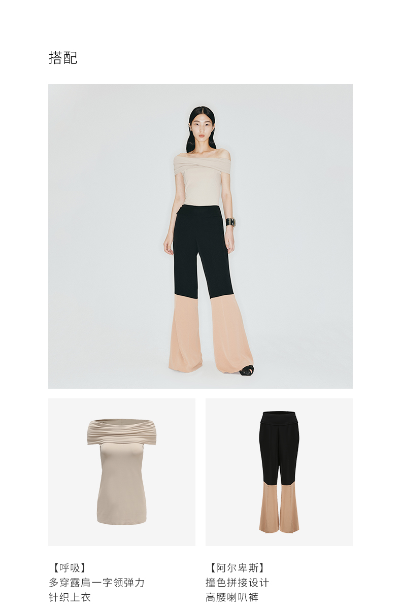 【呼吸】多穿露肩一字领弹力针织上衣/230011