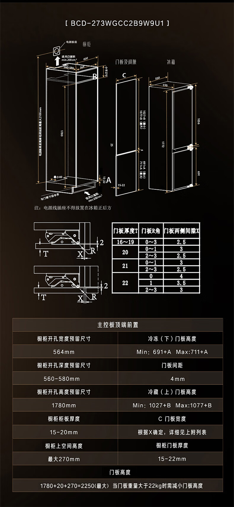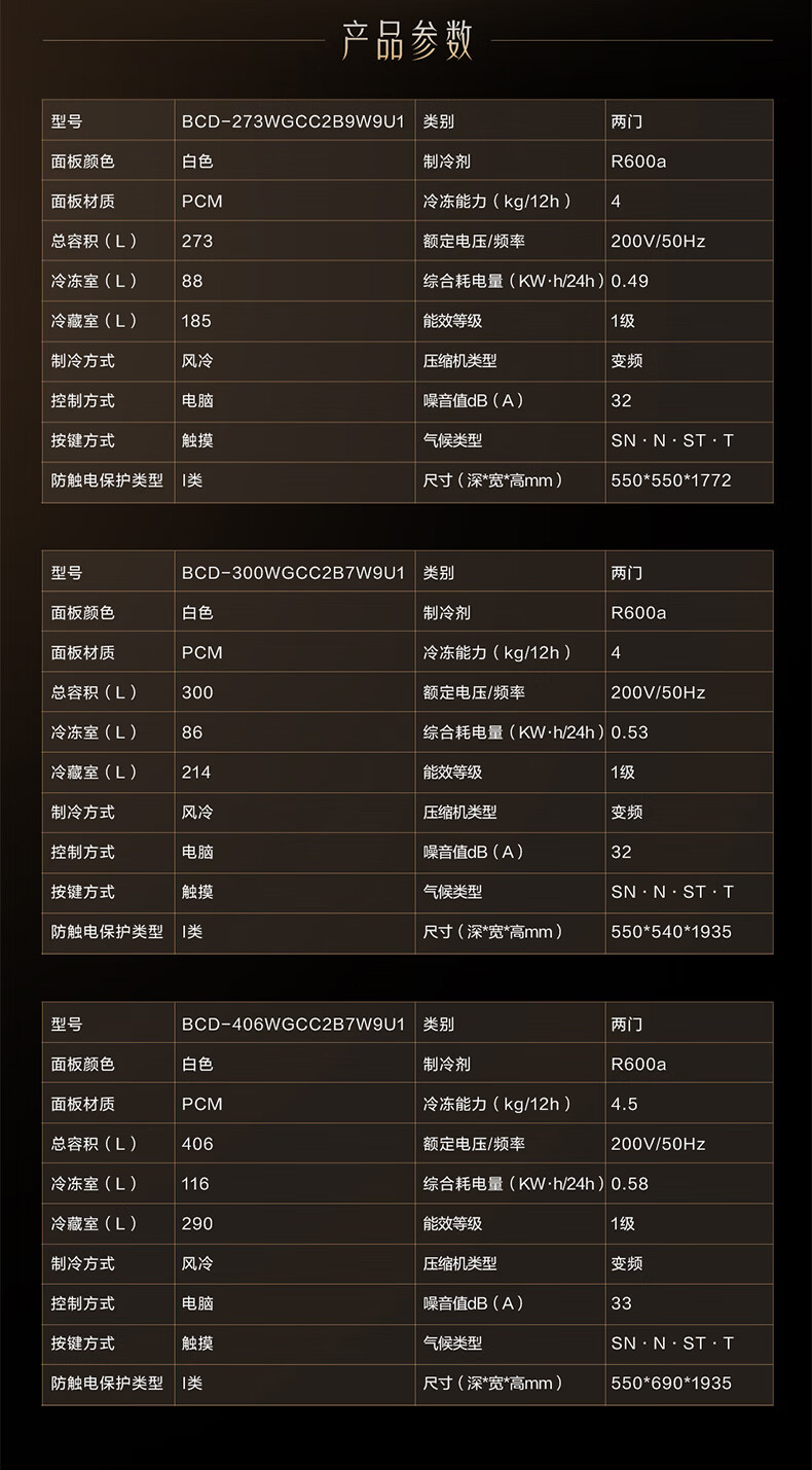 卡萨帝(Casarte)273升家用冰箱 BCD-273WGCC2B9W9U1