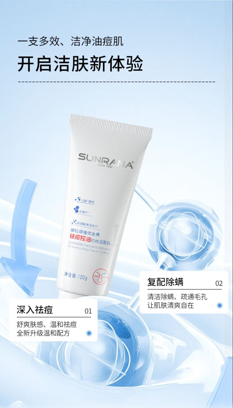 姗拉娜植优经典祛痘洁面乳100g