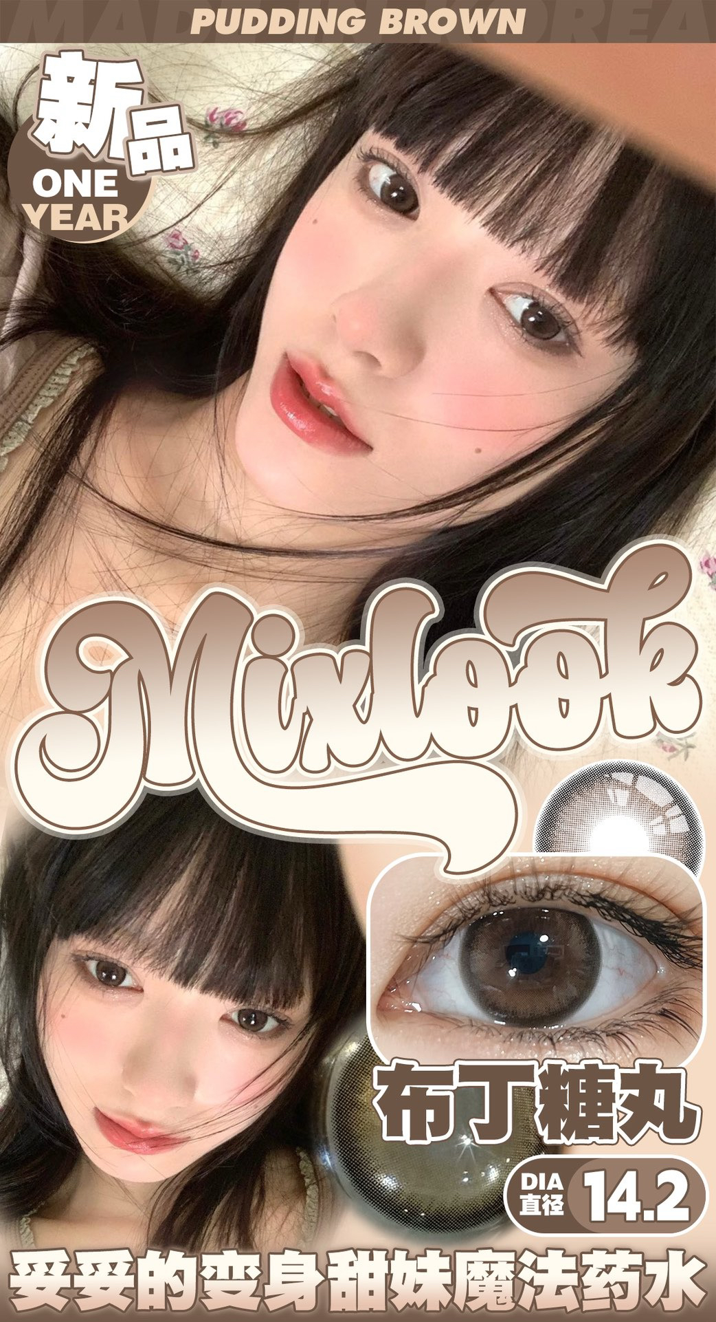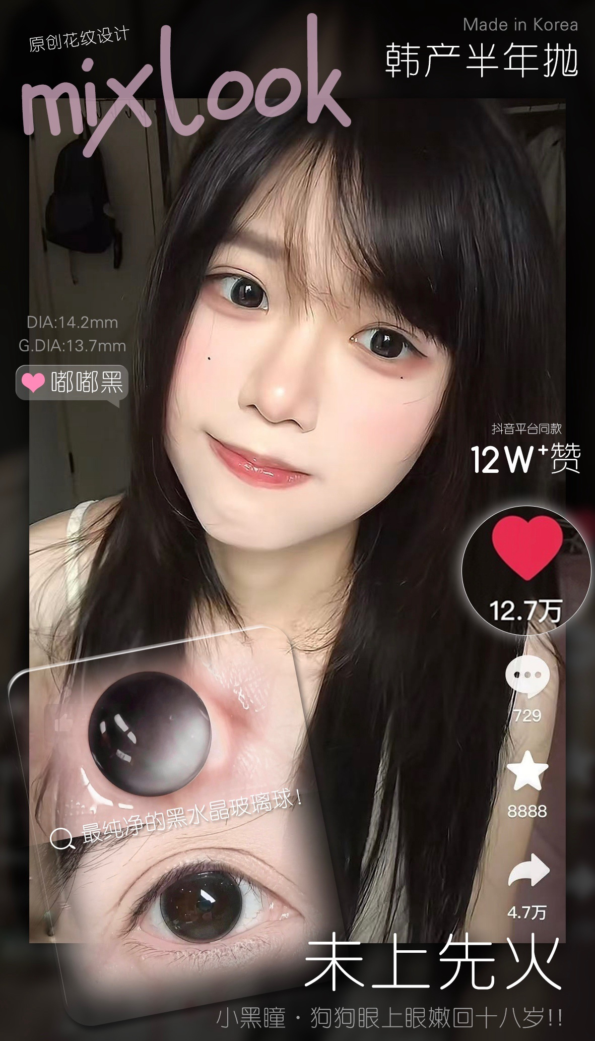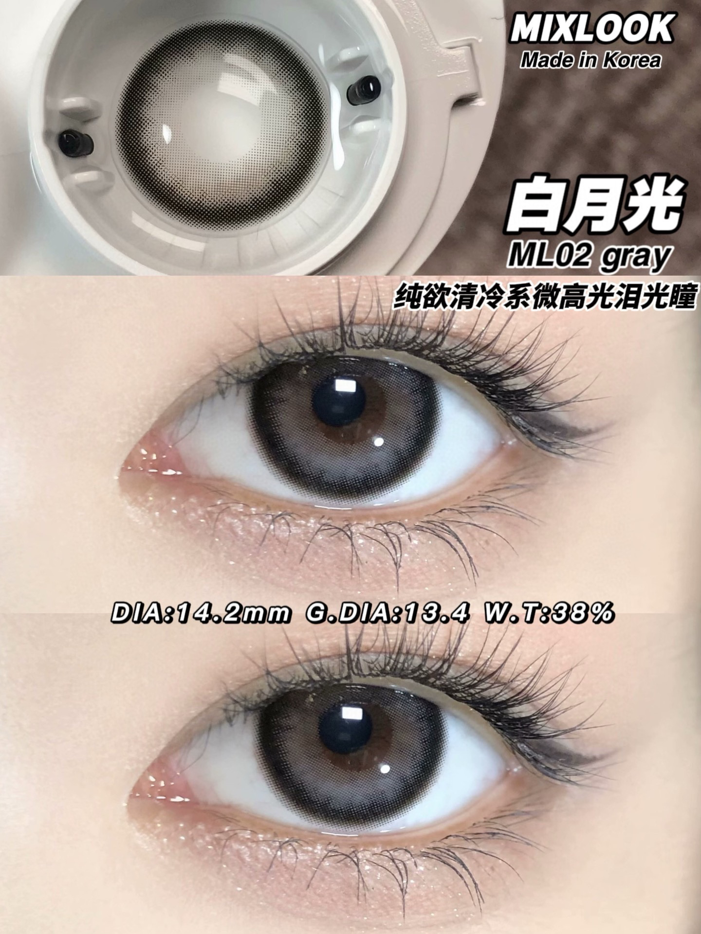 mixlook韩产半年抛混搭 梨花泪小青柑/黑巧粉美瞳