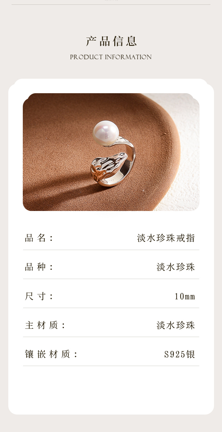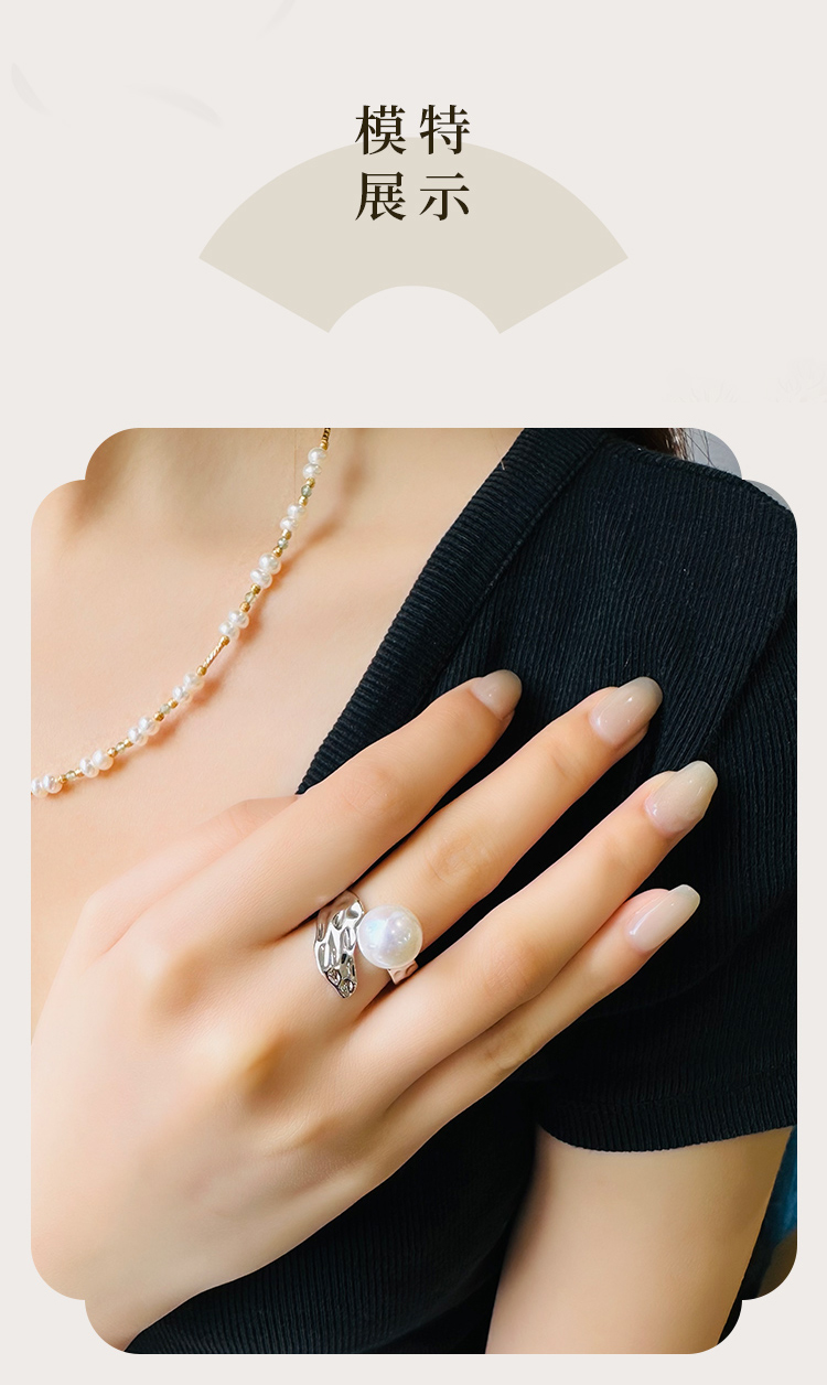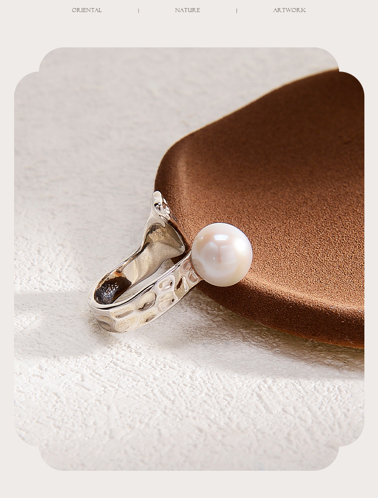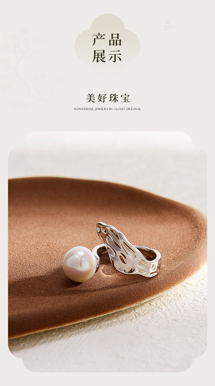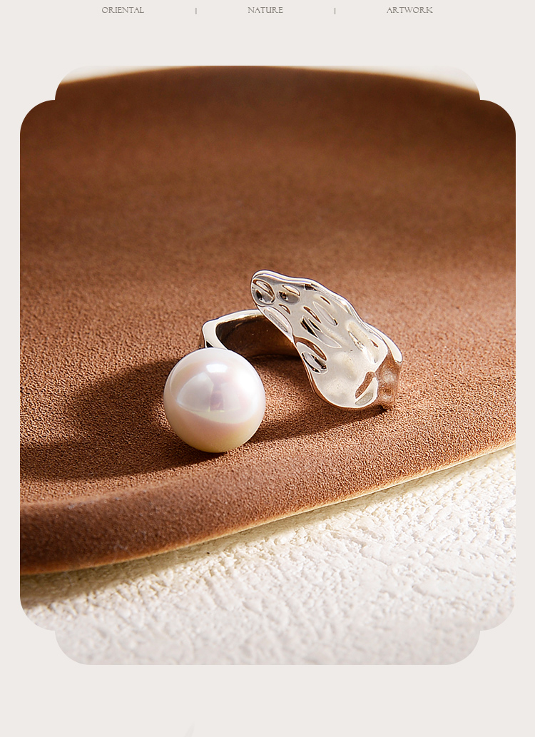 ysxb-10006【云赏珠宝】海上明珠系列-设计款高品质天然强光正圆无暇珍珠s925银海波浪纹戒指