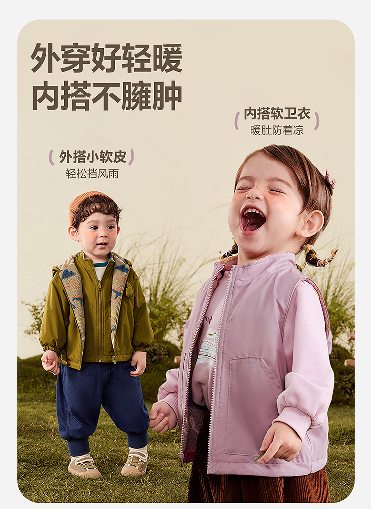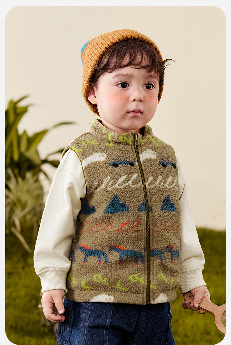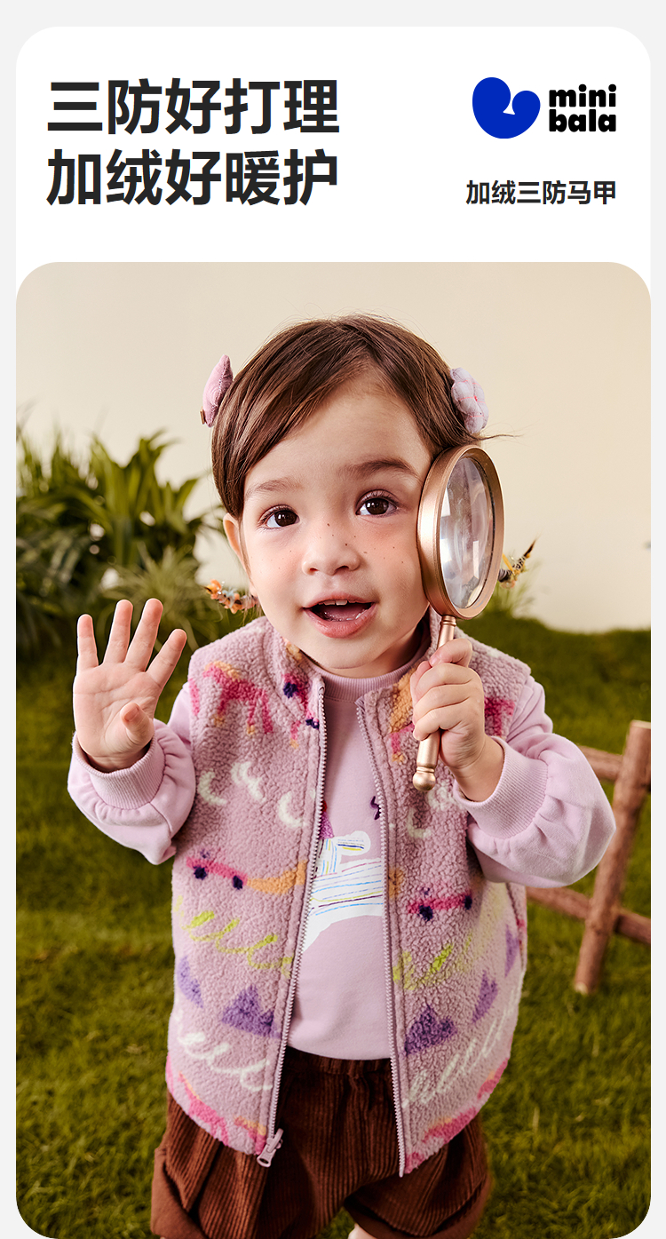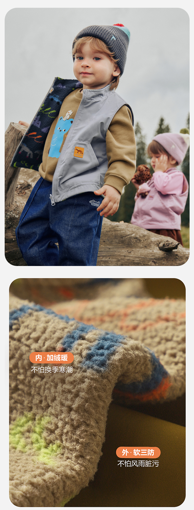 迷你巴拉男女童马甲外套宝宝仿羊羔毛保暖立领三防上衣