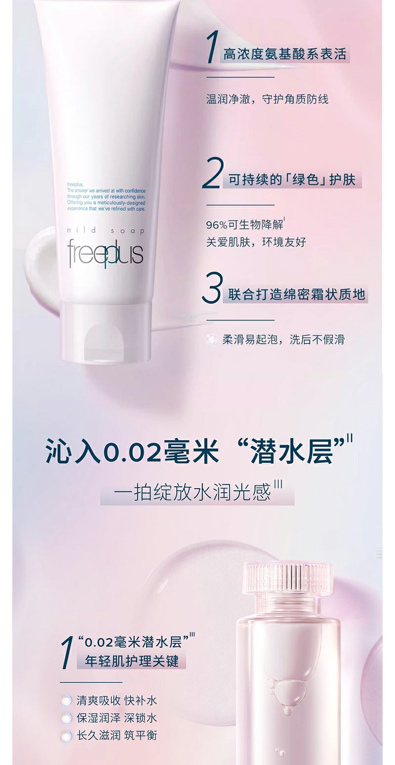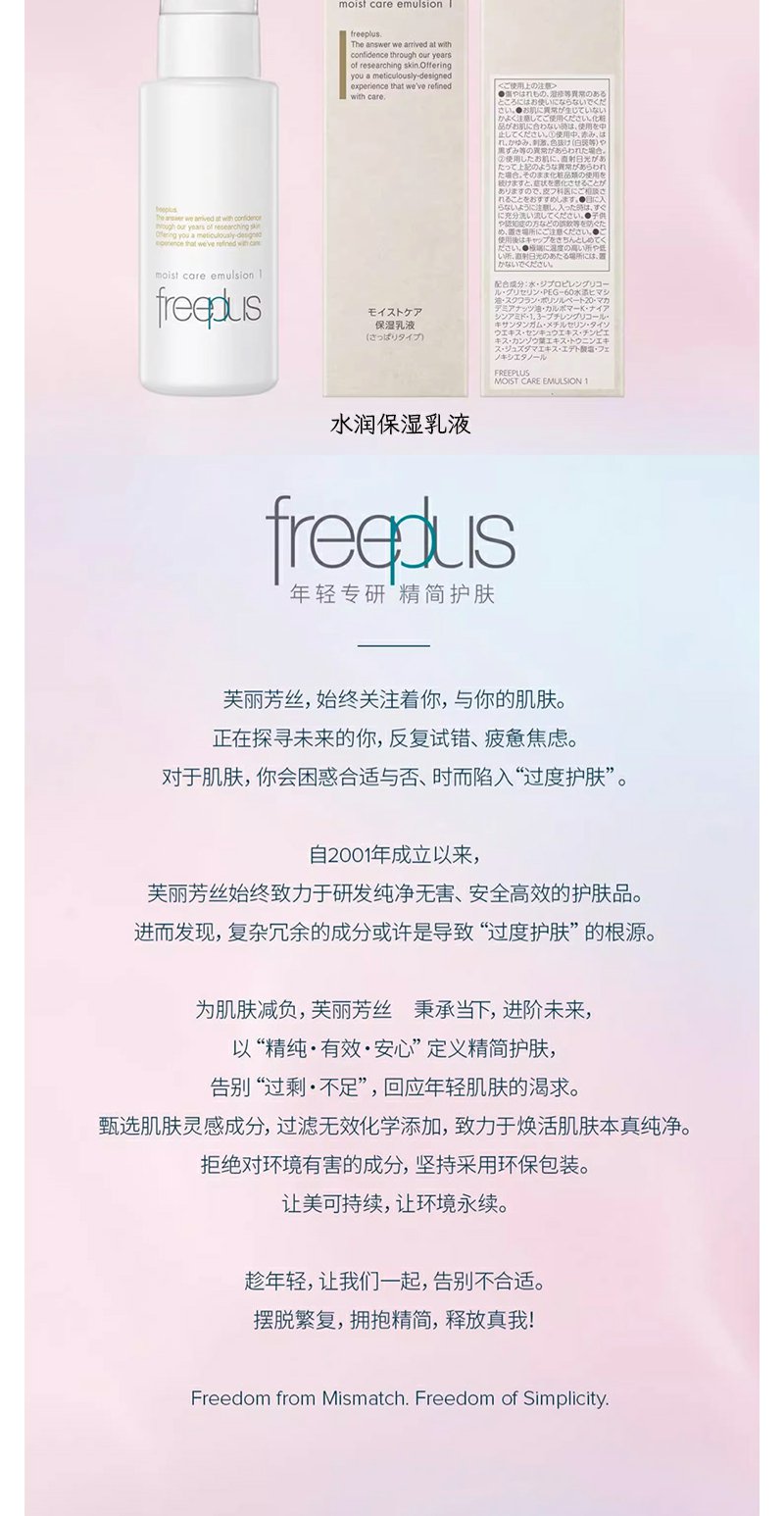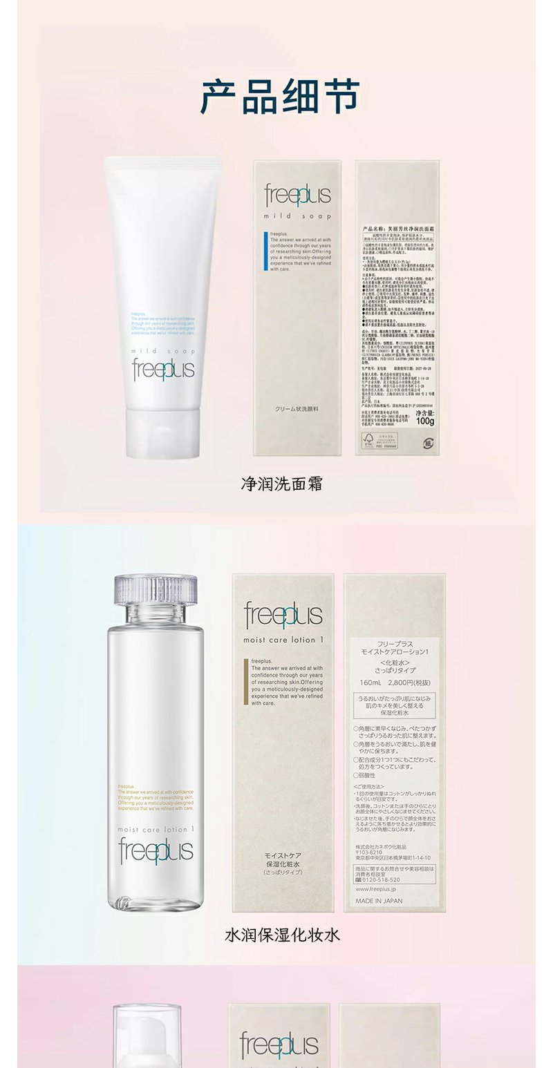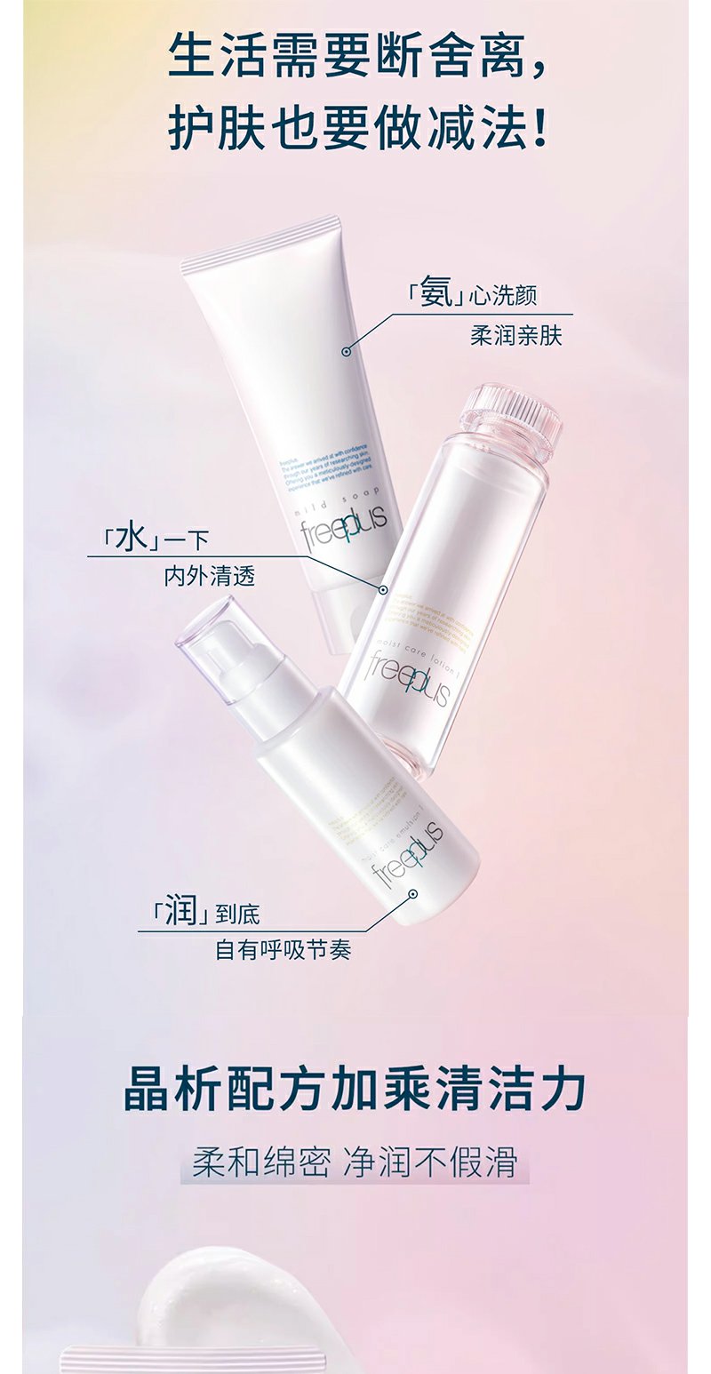 【芙丽芳丝】B1F freeplus芙丽芳丝洁面水乳套(净润洗面霜100g+水润保湿化妆水160ml+水润保湿乳液100ml【清爽型/柔润型可选】)
