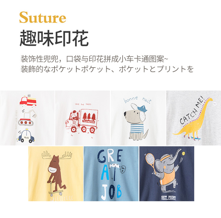 fx-儿童趣味印花插肩袖T恤PCTX2413