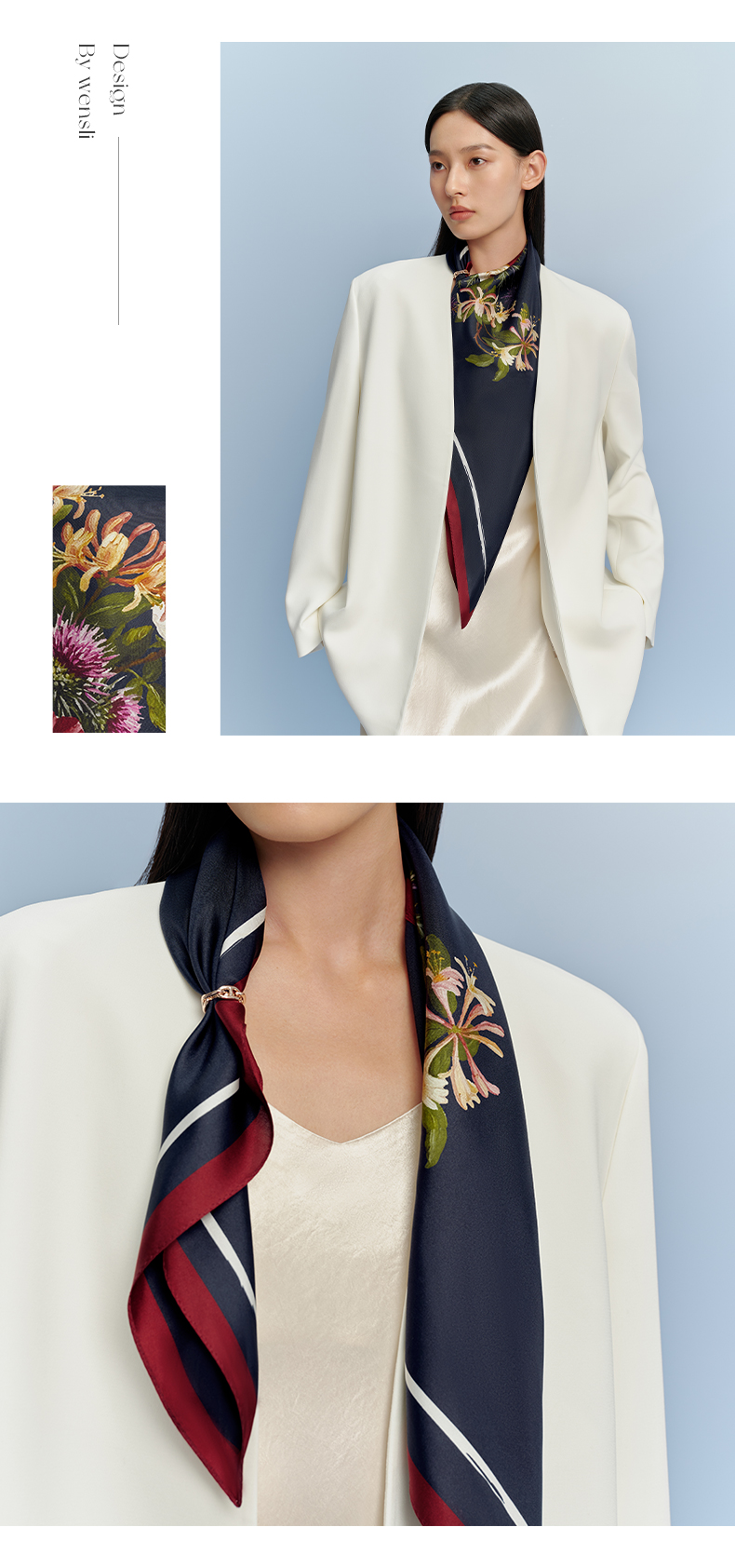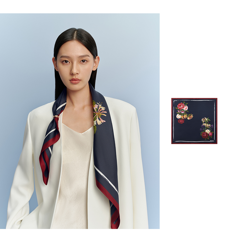 万事利“梦瑶”63厘米双面印花真丝中方巾