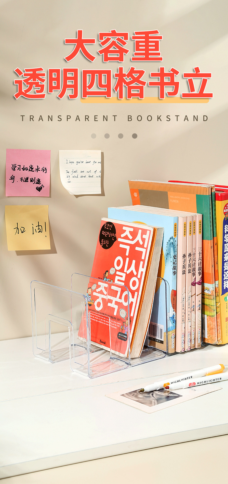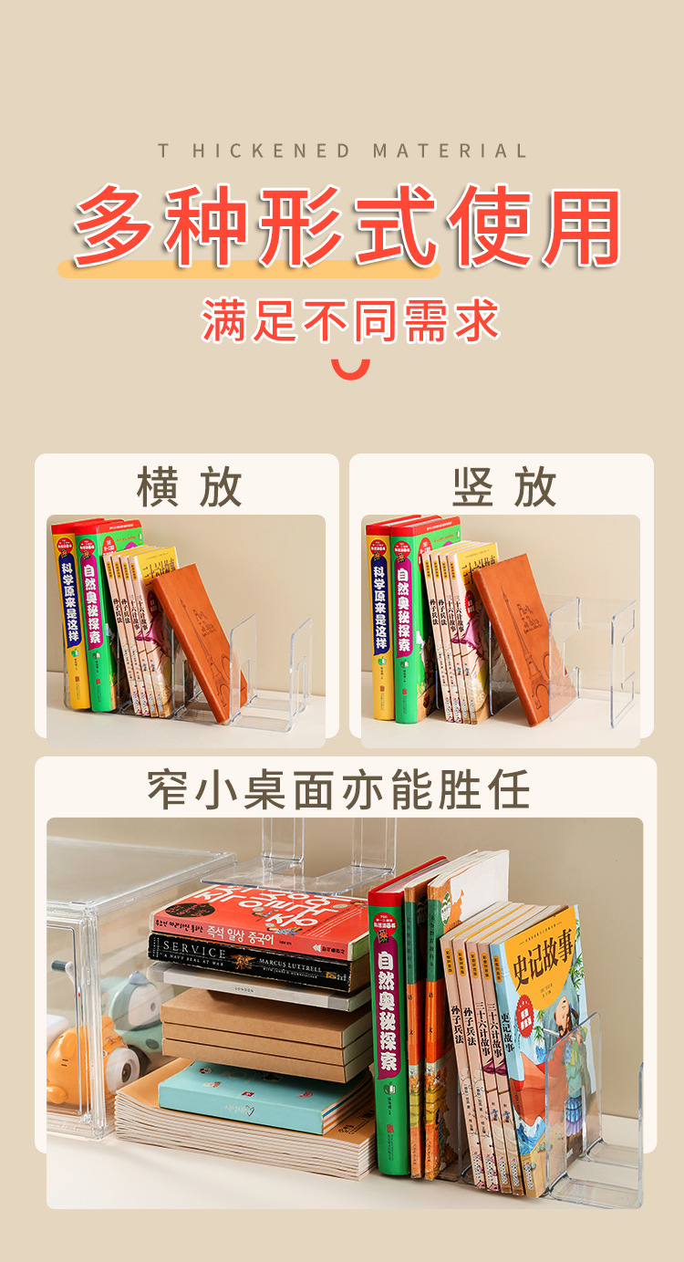 亚克力书立架阅读架书夹桌面书架桌上固定书本收纳神器透明置物架