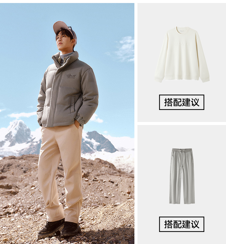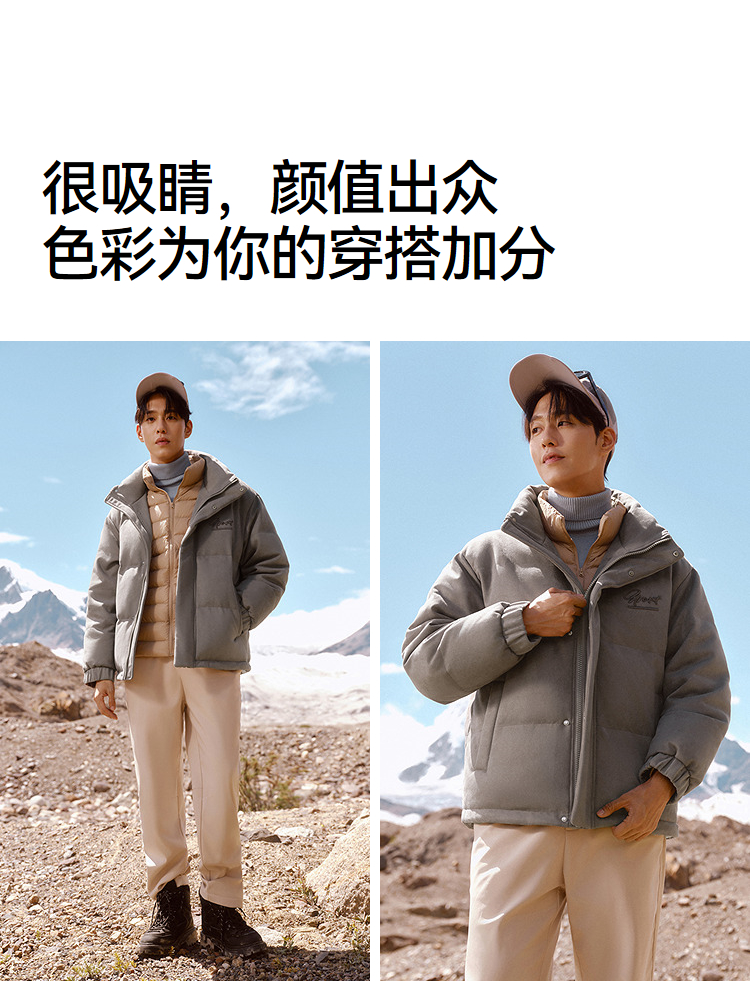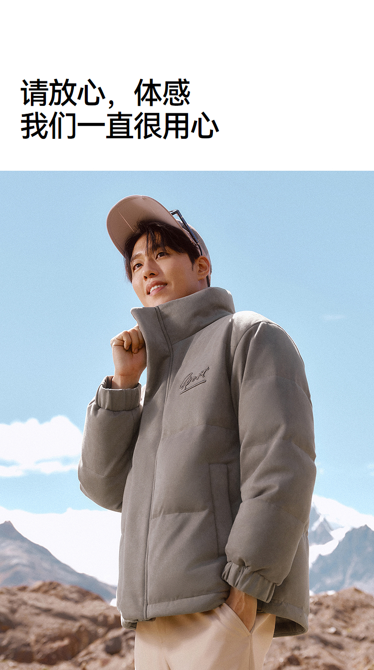 森马羽绒服男加厚保暖立领外套美式运动风绣花2025新款冬装情侣潮