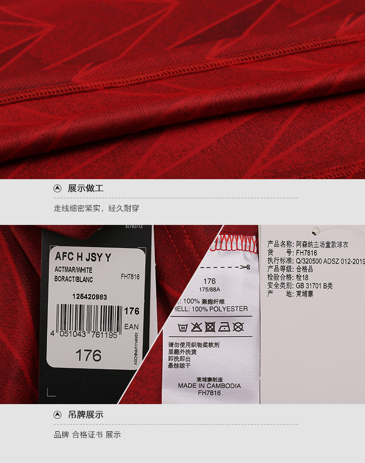 ADIDAS/阿迪达斯阿森纳20/21赛季儿童主场球衣FH7816