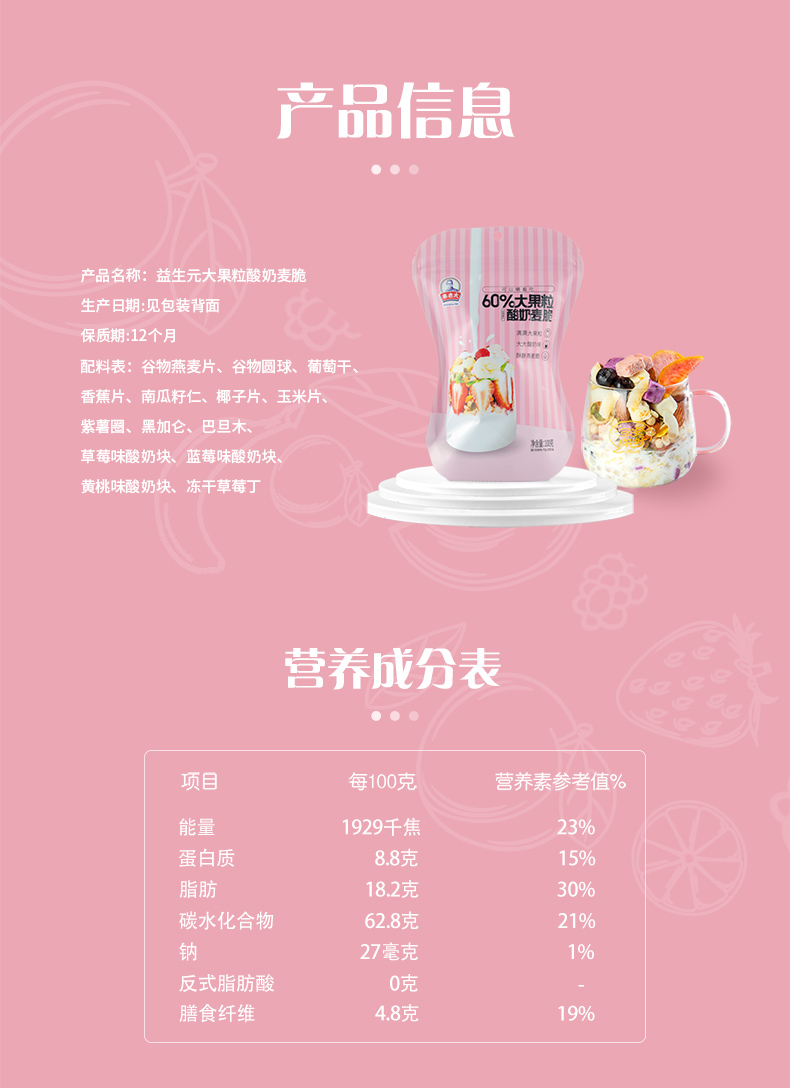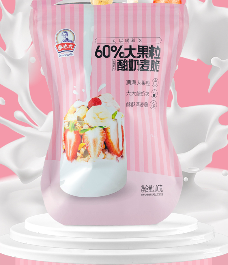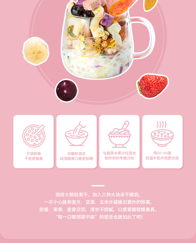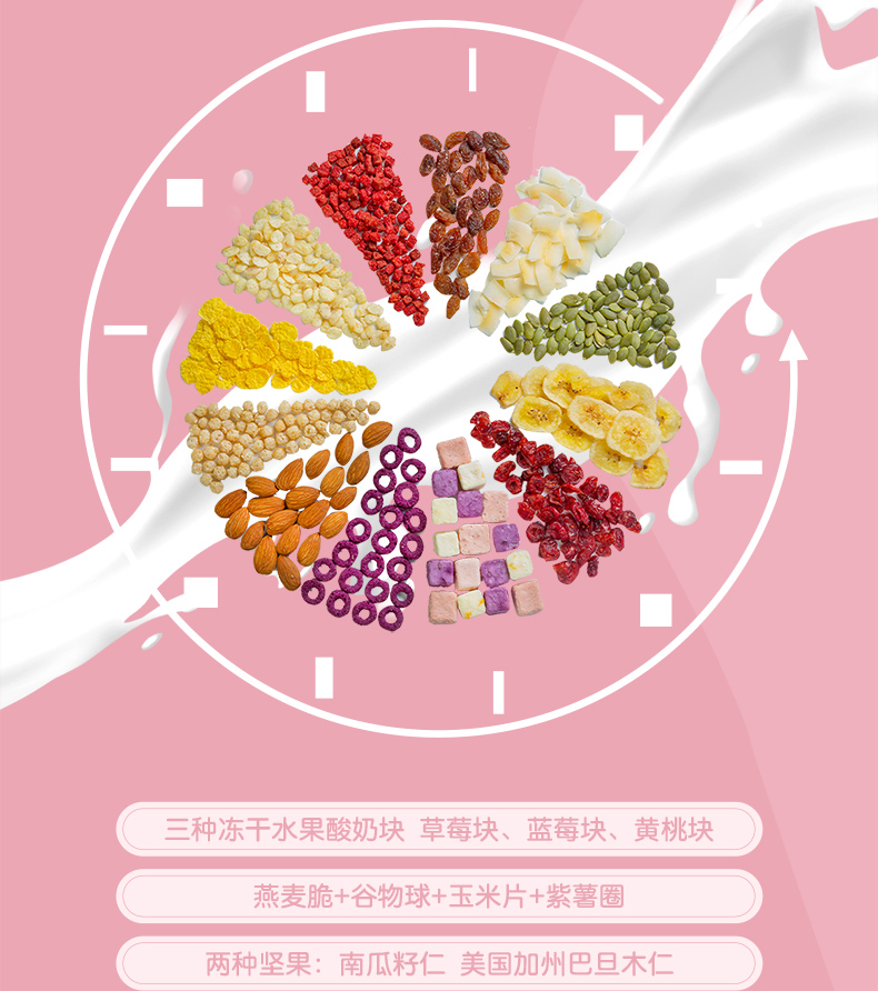 秦老太酸奶草莓谷脆麦片/410g(冻干水果酸奶块+2种坚果+5种果干)