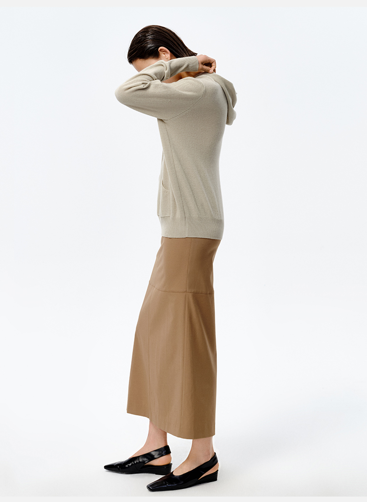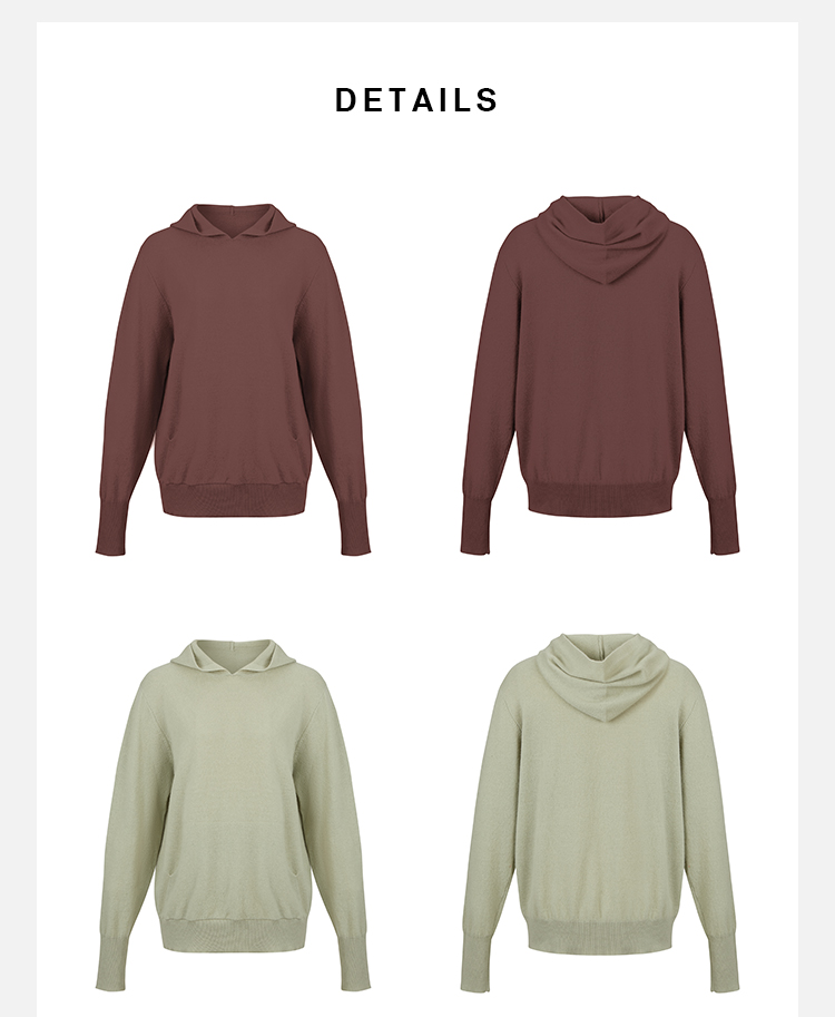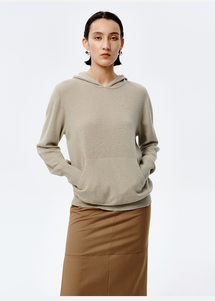 HIDEMI 美利奴羊毛系列连帽廓形宽松针织帽衫 抹茶绿/玛奇朵色