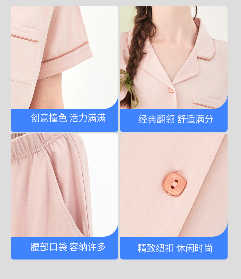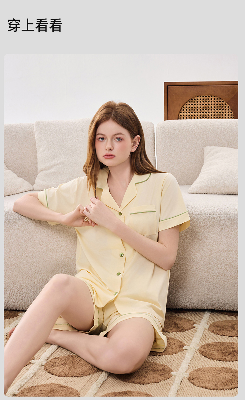限时9折【莫代尔翻领短袖短裤】A类 无芳香胺无异味 放心贴身穿DKM411B-CC